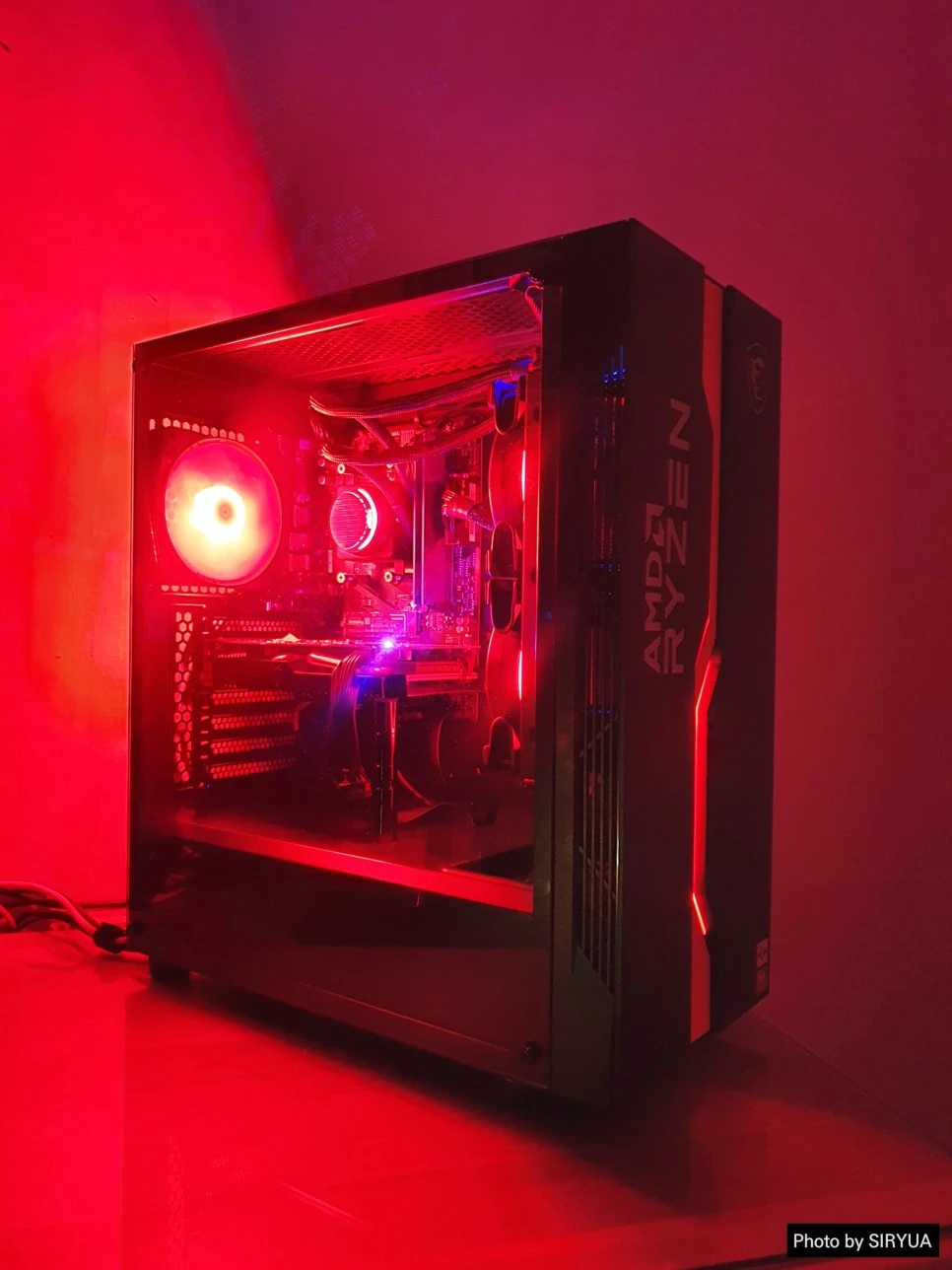 전원을 키면 후면 120 mm 쿨링팬과 전면 LED 바가 붉게 빛이 납니다. AMD의 브랜드 컬러인 붉은색으로 빛이 나니까 확실히 감성이 돋습니다.