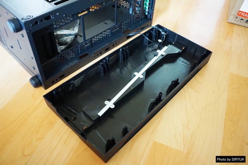 m-ATX 보드를 가지고 조립해보면 밑에 여유 공간이 많이 남아있습니다.