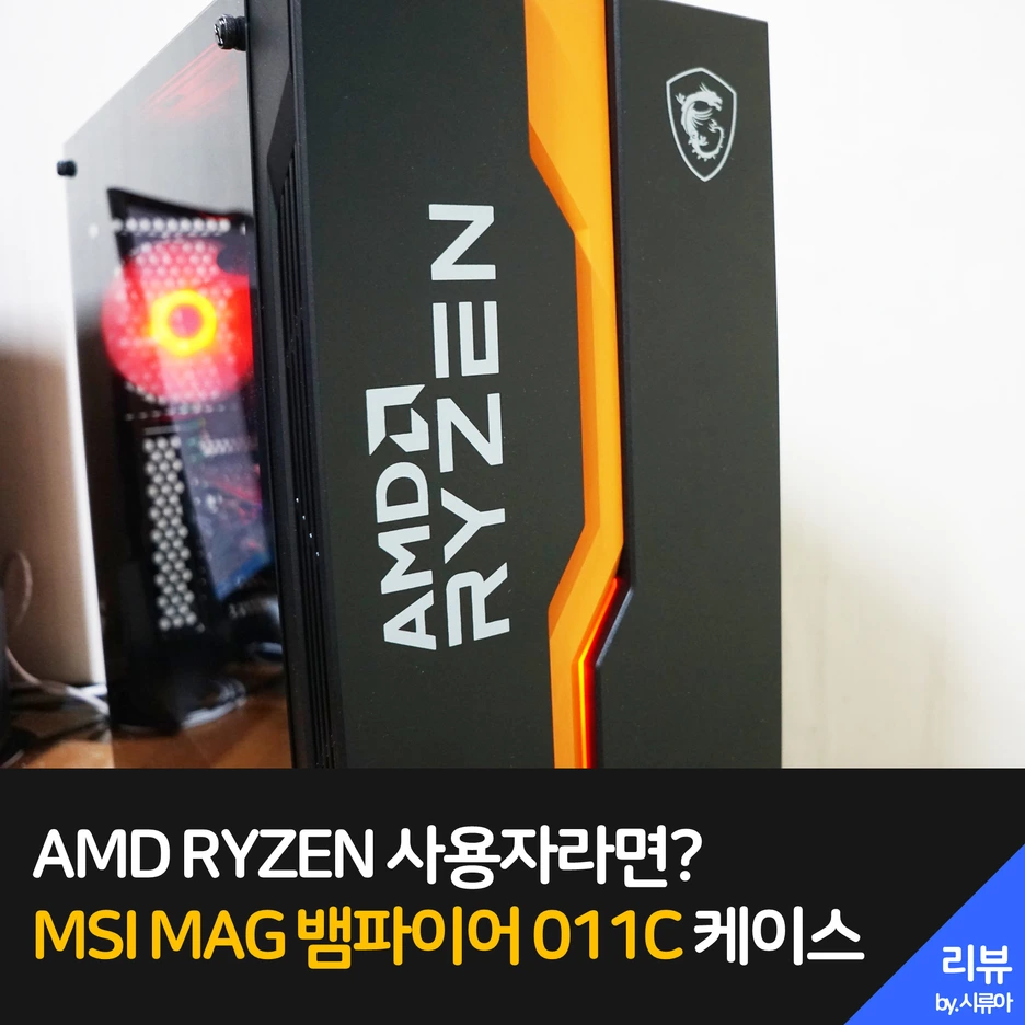 AMD에서 가성비가 매우 훌륭한 Zen 아키텍처를 공개한 이후 라이젠으로 시스템을 구성하시는 분들이 많이 계십니다. MSI에서는 이런 분들을 위해서 '아! 이 PC는 AMD RYZEN으로 시스템이 구성되었구나!' 바로 생각될만한 케이스를 출시했습니다. 바로 'MSI MAG 뱀파이어 011C AMD 라이젠 에디션' 케이스(이하 011C)인데요, 미들타워급 게이밍 케이스인 'MAG 뱀파이어 010M' 케이스를 베이스로 전면에 AMD 로고를 크게 그려놓고 주황색으로 포인트를 주고 있습니다. CPU부터 그래픽카드까지 전부 AMD 시스템을 사용하고 있는 사용자로써 상당히 기대되는 케이스로 현재 다나와 기준 약 6.9만 원에 판매되고 있는데요, 한 번 살펴보도록 하겠습니다.