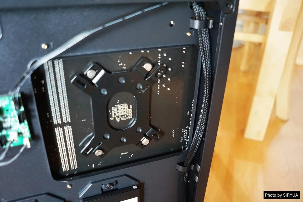 2.5 인치 HDD나 SSD를 부착할 수 있는 슬롯은 메인보드 뒤쪽 벽면에 붙어서 고정되도록 되어있습니다.