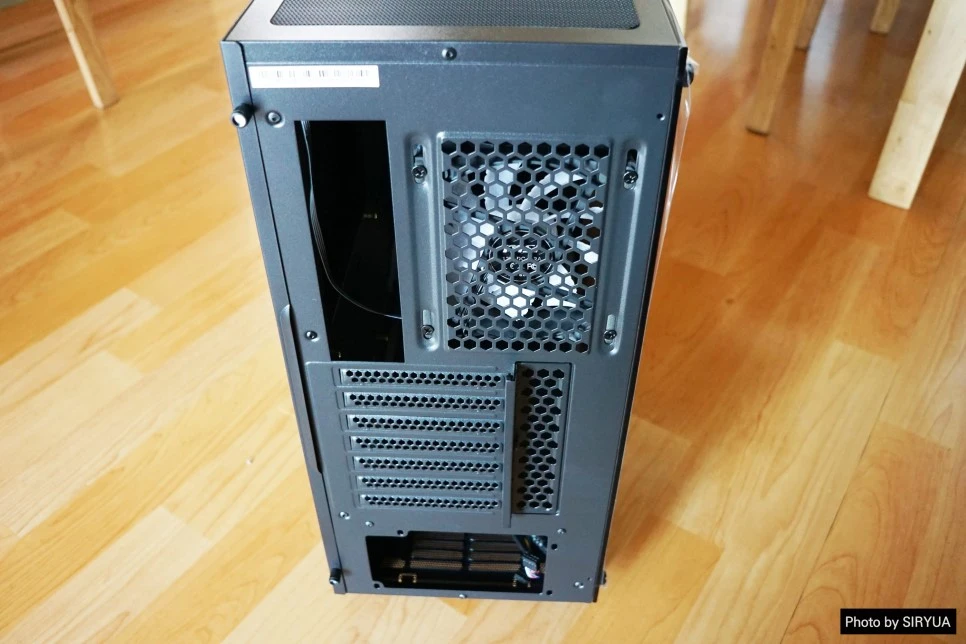 최근 나오고 있는 많은 케이스들처럼 파워서플라이는 하단으로 배치하고 메인보드는 상단으로 배치하는 구조로 되어있으며, AGP 옆으로 120mm RGB 쿨링팬이 기본적으로 부착되어있습니다.