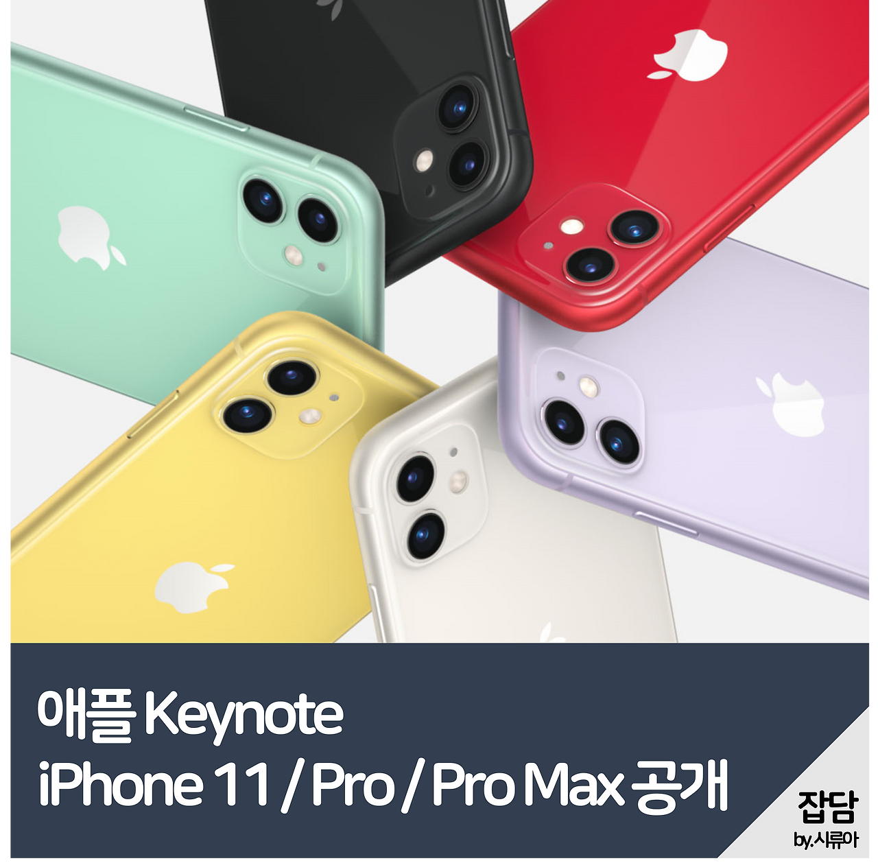 한국 시간으로 2019년 09월 11일, 약 새벽 2시경 애플이 자체 행사를 통해서 iPhone 11, 11 Pro, 11 Pro Max 총 3종의 아이폰을 공개했습니다. 키노트에서 발표한 내용은 이것저것 많이 있었지만 주 관심사는 아이폰이었던 만큼 간단하게 이번에 공개된 아이폰 11, 11 Pro, 11 Pro Max에 대해서 정리해보고자 합니다.