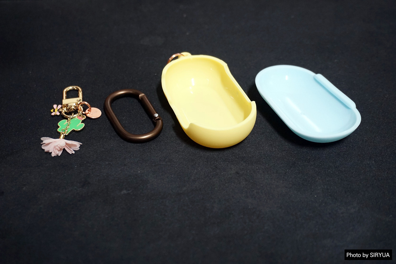 엘라고 케이스에는 카라비너가 포함되어있습니다. 코드리스(TWS) 이어폰을 휴대하다 보면 보통 주머니 속이나 가방 속에 넣고 휴대할 수밖에 없는데, 카라비너를 제공해주고 있다 보니 가방과 여행용 캐리어, 자전거 등 걸 수 있는 곳에 손쉽게 걸어서 휴대할 수 있습니다. 아 참, 카라비너 이용해서 밖에 매달고 휴대하신다면 꼭! 뚜껑 열리는 경우 조심해주세요 ;)
