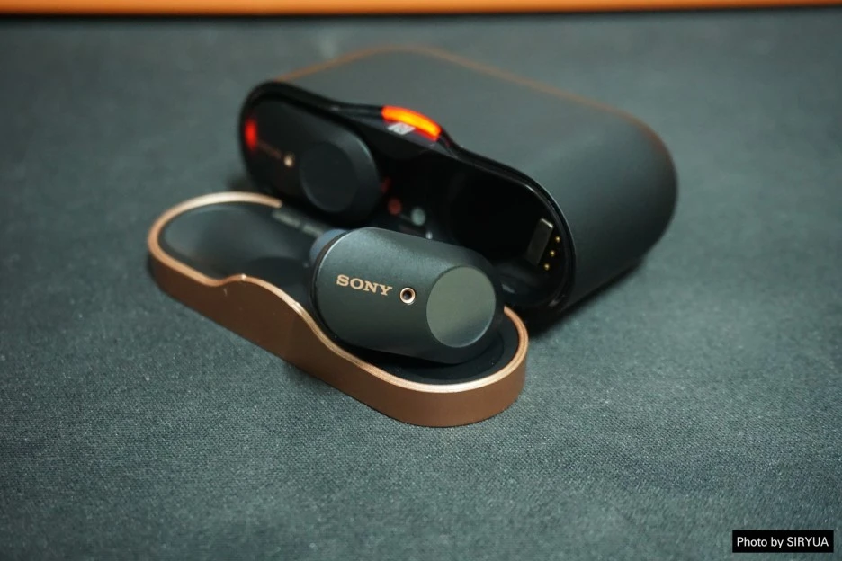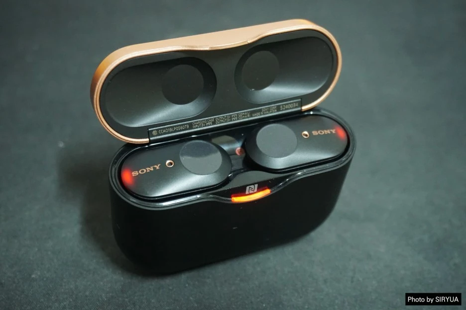 나름 괜찮다고 생각되지만 아쉬운 부분이 있다면, 충전 케이스를 세워둘 수 있도록 되어있는 많은 코드리스 제품들과 달리 아예 원형으로 되어있고 충전 포트가 아래쪽을 보고 있기 때문에 세워둘 수가 없습니다. 물론 개인마다 생각하는 것이 다르기 때문에 '이게 무엇이 문제야?'라고 생각할 수 있는 요소이지만, 제 입장에서는 이 부분은 아쉽게 다가왔습니다. 상황에 따라서는 한 손으로 편하게 커버를 열고 바로 이어버드를 꺼내서 사용할 수 있어야 되는데, WF-1000XM3 같은 경우 일단 편하게 이어버드를 꺼내려면 한 손으로 잡고 다른 한 손으로 꺼내야 됩니다. 물론 눕혀둔 상태에서 커버만 열고 꺼낼 수 있기도 하지만, 상대적으로 다른 케이스에 비해서 다소 불편하기 때문에 아쉬운 점으로 자리 잡습니다.
