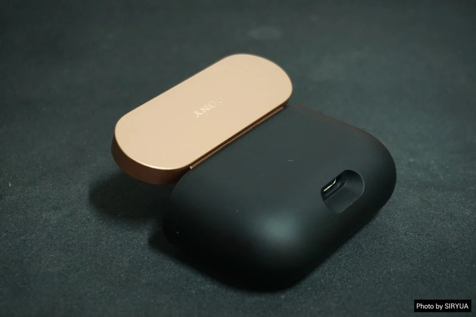 케이스의 색상 배치는 상당히 괜찮고 이쁘다고 생각됩니다. 이전 제품 같은 경우 한 색상으로 되어있어서 오랜 기간 보고 있다 보면 약간 질리는 감이 없지 않아 있었습니다. 색상 자체도 그렇게까지 이쁘다는 생각이 많이 들지도 않았고요. 하지만 이번 충전 케이스 같은 경우 색상 매칭을 커버와 본체를 다르게 하여 투톤으로 하고 있습니다. 커버는 구릿빛 금색으로 통일하고 제품 색상이 검정이냐 흰색이냐에 따라서 본체 색상이 달라지는 구조인데 두 색상 다 매칭이 상당히 잘 되어있어서 이쁘다는 생각이 많이 듭니다.