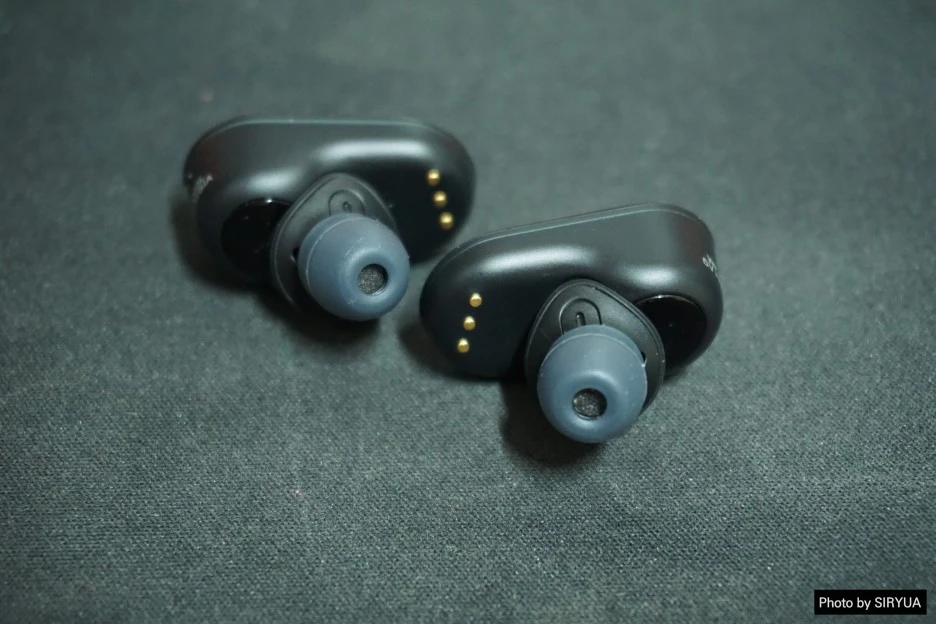 구성품은 이어버드, 충전 케이스, Type C to A 케이블, 이어 팁, 설명서가 있으며, 이어 팁이 정말 알차게 제공되고 있습니다. 일반 실리콘 팁 3쌍과 트리플 컴포트 팁 3쌍이 플라스틱 일회용 보관 케이스에 담겨있으며, 일반 실리콘 팁 중간 사이즈와 가장 큰 사이즈의 중간 크기가 이어버드에 장착되어있습니다. 총 7가지의 선택권이 제공되고 있으며 귀에 잘 맞고 밀폐감이 좋은 팁을 골라서 사용하면 됩니다. 여담으로 트리플 컴포트 팁은 익히 착용감과 차음성이 좋으며 고음 손실이 없는 것으로 많이 알려져 있습니다.