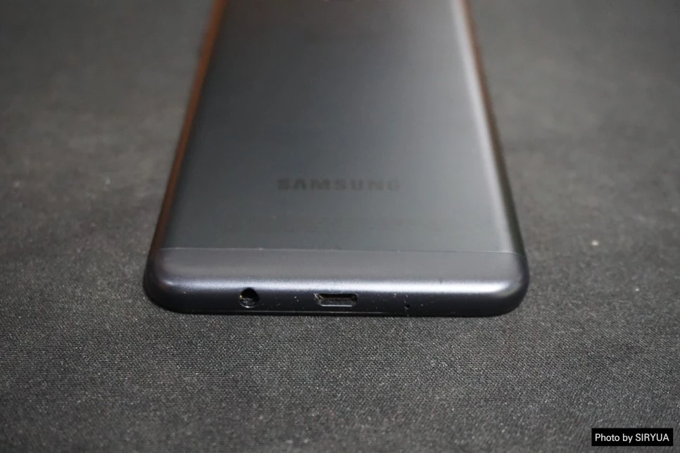 후면에는 카 툭 튀가 전혀 없고 카메라와 LED 플래시가 위치하고 있습니다. 이외에도 통신사 로고와 삼성 로고 등이 보이지만 색상이 어둡게 되어있어서 잘 보이지는 않습니다. 그리고 금속 재질 특성상 전파가 통하지 않는다는 점을 고려해서 상하단 같은 경우 다른 재질로 되어서 구분이 되고 있습니다. 유리 재질을 사용하고 편광 필름 등으로 구성되어 있는 플래그십과는 달리 심플한 것이 여러모로 색다른 맛이 있는 것 같습니다.