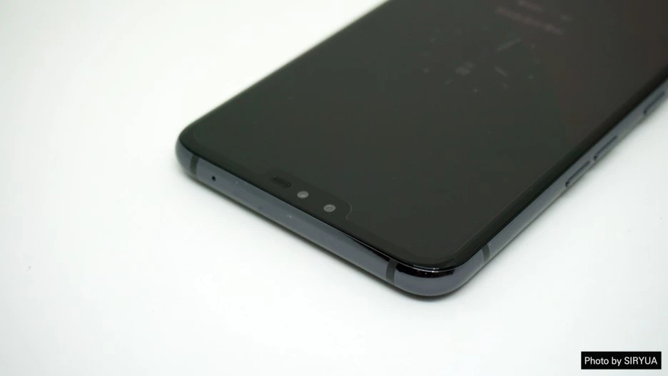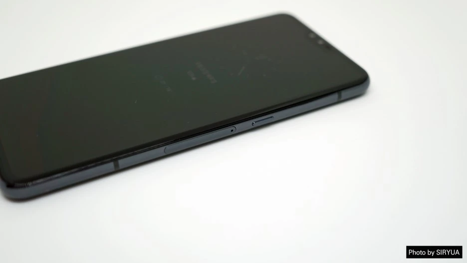 V50은 전면은 19.5:9 비율을 가진 6.4 인치 OLED 디스플레이를 사용한 제품으로 상당히 심플하고 깔끔한 디자인을 보여주고 있습니다. LG전자에서는 추가적으로 디스플레이를 달아놓은 것도 아님에도 불구하고 노치 영역을 뉴 세컨드 스크린으로 명명하고 부르고 있지요? 상단 면에는 노치가 자리 잡고 있으며, 베젤과 겹치는 부분을 제외하고는 약 24 x 4mm 정도의 크기로 디스플레이 영역에 간섭하고 있습니다. 노치 영역 안에는 카메라와 센서들이 중앙에서부터 왼쪽 면으로 080 모양으로 배치되어 있으며, 우측으로는 통화 스피커가 있습니다. 베젤에 있어서는 상단과 측면 약 3mm, 하단 약 5mm 정도의 크기로 약간 두껍기는 하지만 전반적으로 균일하고 깔끔한 수준의 베젤을 가지고 있습니다.