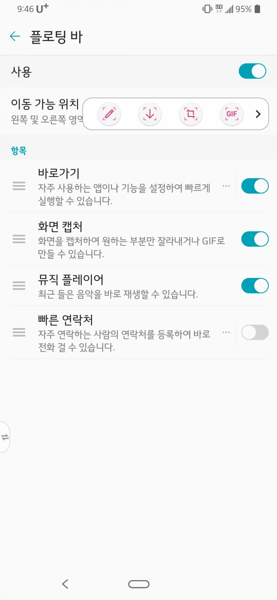 사용자의 취향에 따라서 앱 서랍 사용 유무를 선택해서 사용할 수 있어서 매우 편리하고 괜찮은 홈인데 한 가지 옥에 티 나 다름없는 버그가 있습니다. 바로 내비게이션 바(LG 기준 홈 터치 버튼)를 제스처로 설정할 경우 앱 서랍을 사용하지 않겠다고 설정했음에도 불구하고 앱 서랍이 올라옵니다. 아무래도 플래그 설정에 있어서 문제가 있는 듯한데.. 발생되는 현상은 사실상 사용자가 설정해둔 값을 무시하는 것이나 다름없습니다.