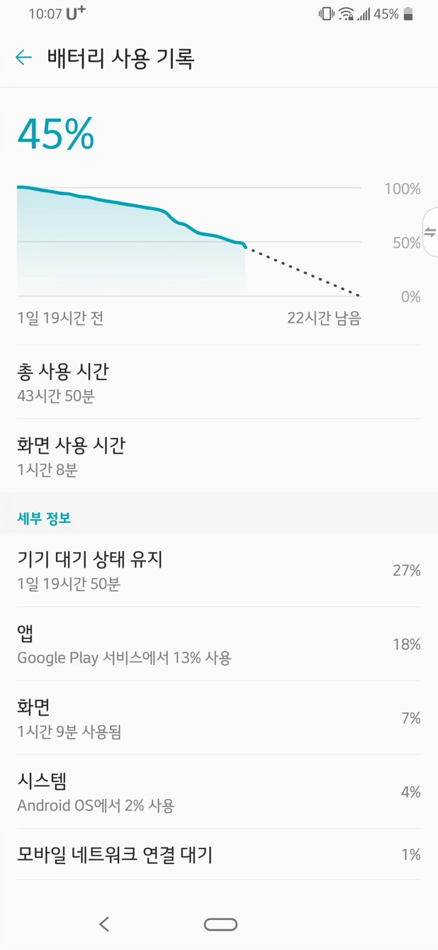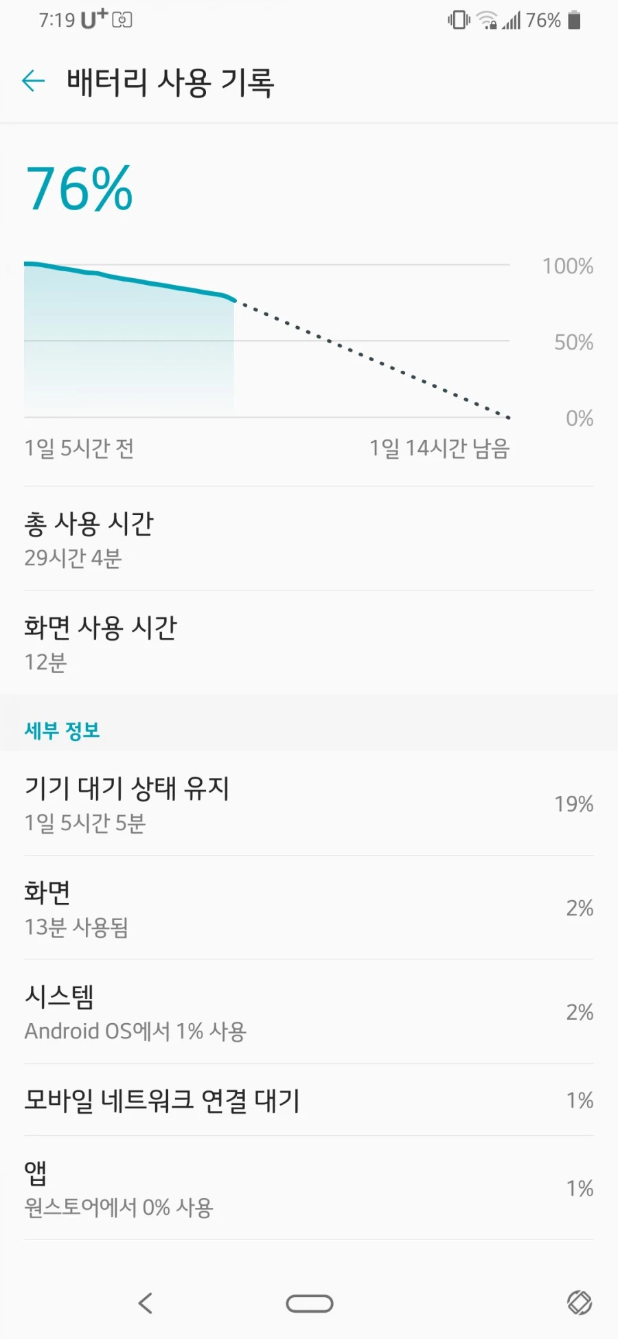 배터리에 있어서는 실질적으로 제대로 오랜 기간 잡고 사용해보지 못했기 때문에 대기전력만 놓고 이야기하겠습니다.