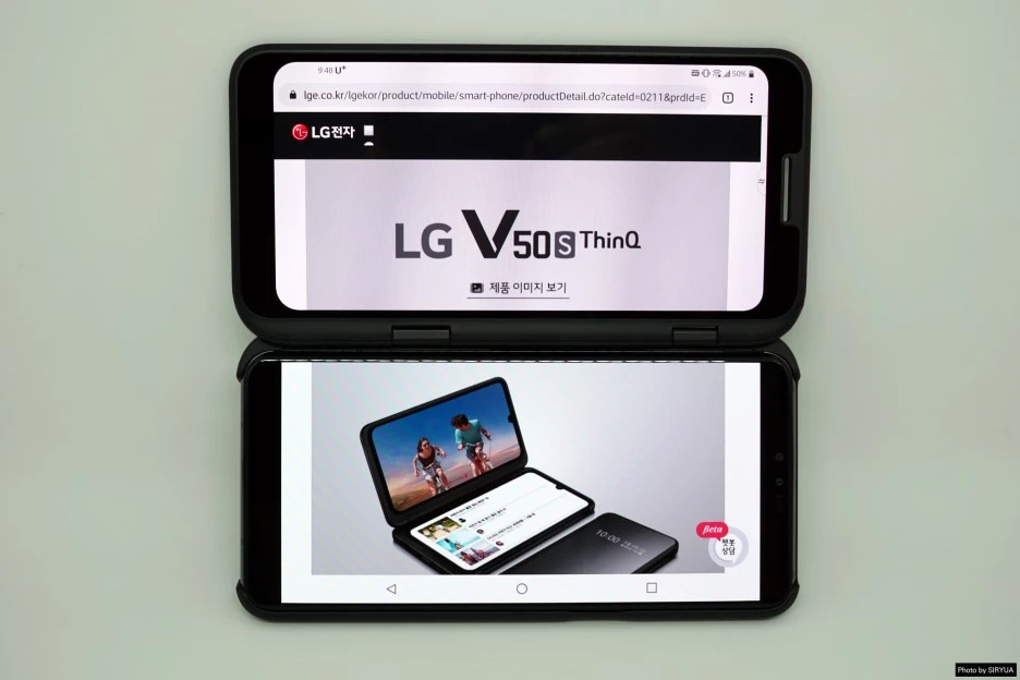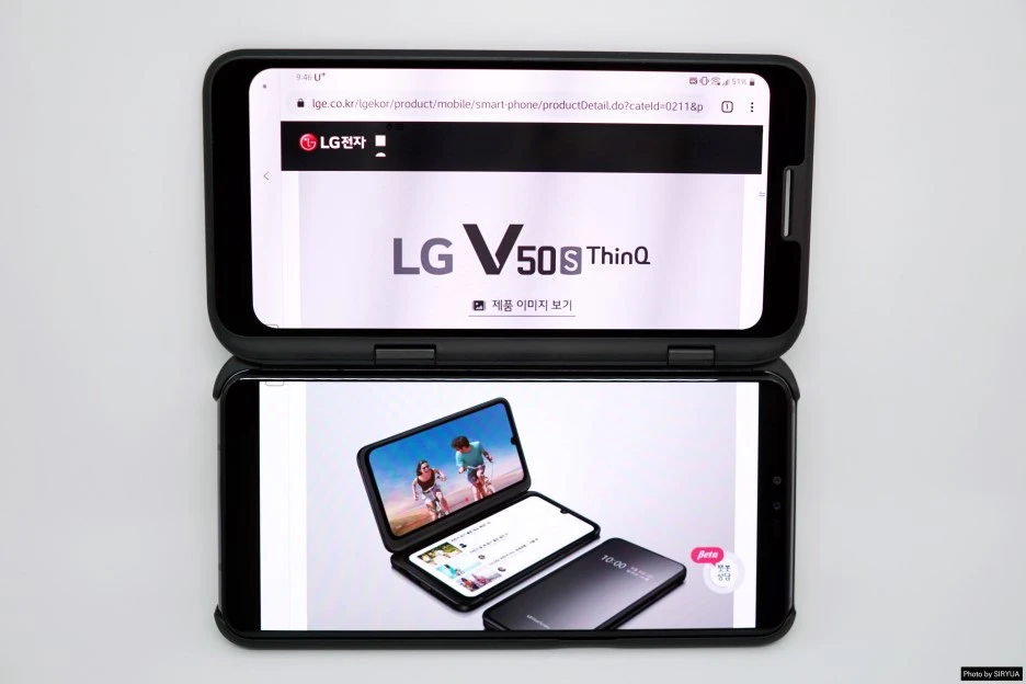 이번 글에서 만나볼 제품은 새로운 폼팩터를 가진 제품들 중에서 LG전자에서 출시한 V50 ThinQ(이하 V50)입니다. 여러 제조사들이 플렉시블 디스플레이를 바탕으로 디스플레이를 접는 것(가변)을 바탕으로 새로운 폼팩터를 공개했다면, LG전자 같은 경우 플렉시블 디스플레이 기술이 완전해지기 전까지 디스플레이를 확장하는 것에 포커스를 맞추고 듀얼 스크린이라는 보조 액세서리를 통해서 기존 폼팩터를 활용하면서 확장이라는 형태의 새로운 폼팩터로서 우리에게 다가온 제품입니다. 반 년 전 제품이 공개되고 출시될 당시 다른 제조사에서 공개한 제품이 너무나도 압도적이다 보니까 폰더블이라는 이름으로 불리면서 비교 대상이 되기도 한 제품인데 한 번 살펴보도록 하겠습니다.
