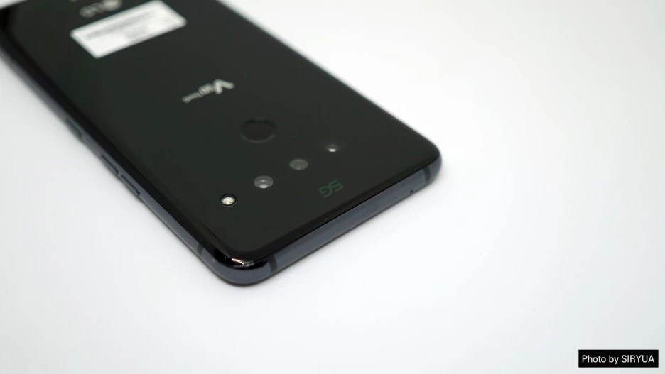 후면 디자인에 있어서는 일부 호불호가 갈릴 요소가 들어가 있지만 상당히 깔끔하고 매끈하게 잘 빠져있습니다. 오래전부터 많은 스마트폰들이 카메라가 튀어나와있는 것이 사실상 기본이나 다름없었고, 카메라가 튀어나와있지 않더라도 정비의 용이성을 위해서 별도적으로 분리되어 있는 경우가 많았는데 V50 같은 경우 그런 것 없이 매끈하게 카메라가 후면 커버 아래에 위치하고 있습니다.