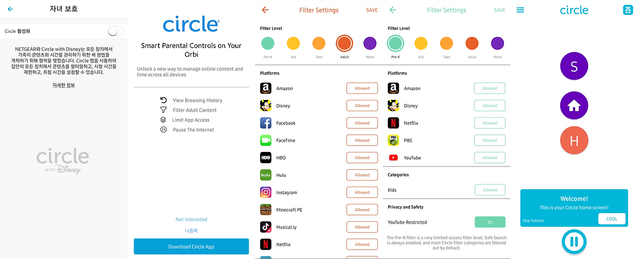 자녀보호 기능 같은 경우 디즈니 서클과 파트너십을 맺고 제공되는 기능입니다.