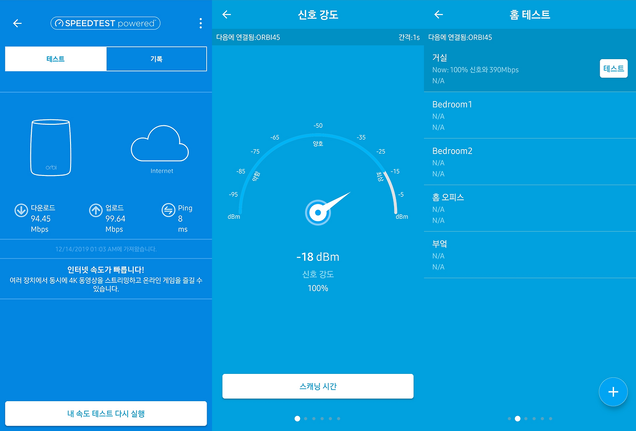 오르비 설정 및 관리 앱을 살펴보고 어느 정도 설정이 마무리되었으니 본격적으로 네트워크 성능을 테스트해보아야겠지요?