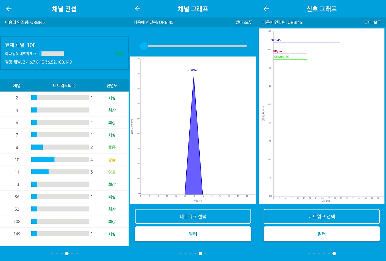 이외 네트워크 채널링에 있어서도 자동으로 간섭이 없는 대역폭에 자리 잡아서 채널 간섭 없이 높은 출력을 제공해주는 것을 볼 수 있었습니다.
