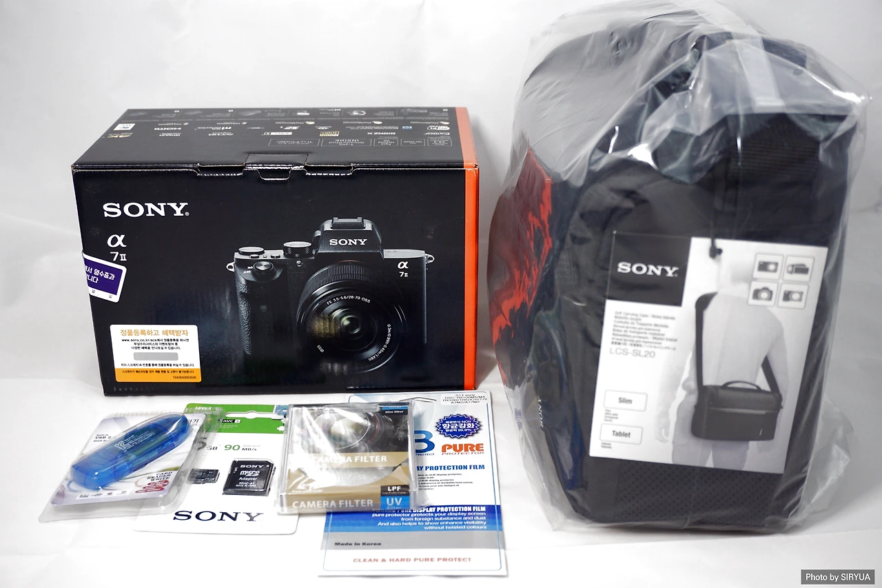 A7M2를 구매하기로 마음먹은 이후로 공식 판매점과 오픈마켓 그리고 오프라인 마켓에서 가격 비교를 진행했었습니다. 그 결과 온라인이든 오프라인이든 큰 가격차이도 없었고, 때마침 일렉트로마트에서 할인행사를 하고 있어서 집 근처 일렉트로마트에서 바로 현장 구매했습니다. 구매 사은품으로는 SD카드, UV 필터, 보호필름, 카메라 가방, 추가 배터리(차주 제공) 등을 받아왔습니다. 한 번 본격적으로 설레는 마음을 담고 박스를 열어보겠습니다 ;)