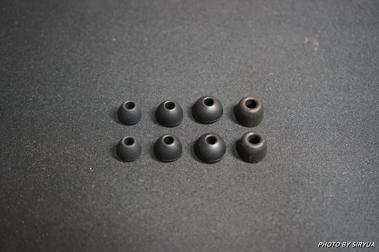 이어 팁은 실리콘 팁 대, 중, 소, 그리고 메모리얼 폼 팁 이렇게 총 네 쌍이 제공됩니다.