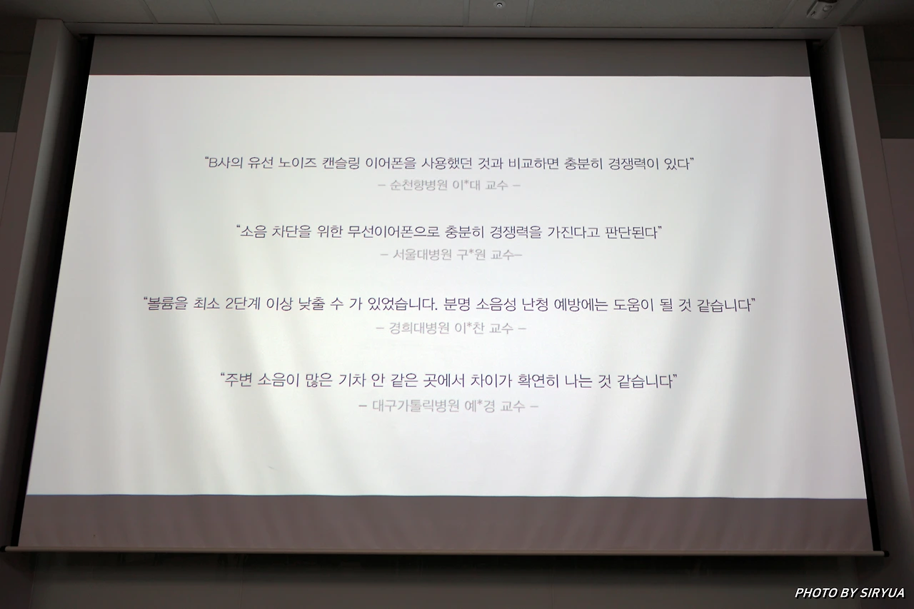 다소 특이하다 생각되는 노. 숨. 가. 코너는 노이즈 캔슬링의 숨겨진 가능성을 축약한 이름을 가진 코너로, 노이즈 캔슬링과 관련하여 여러 가지 이야기를 해주셨습니다. 노래, 영상 등에서 들려오는 소리를 이어폰 또는 헤드셋으로 많이 듣고 있다 보니까 소음성 난청이 온다는 이야기부터 시작해서, 대한 이비인후과와의 협업, 그리고 노이즈 캔슬링을 통해서 볼륨을 낮추어서 청력을 보호하는 것까지 다양한 이야기를 들을 수 있었습니다.