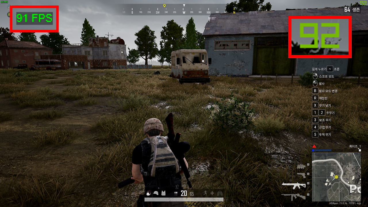 다음은 게임 플레이입니다. 가장 먼저 배틀그라운드를 플레이해보았는데.. 모든 설정을 울트라 옵션으로 설정한 이후 출력 제한을 풀어놓고 플레이해보았습니다. 그 결과 최고 92 FPS를 기록했으며, 평균적으로 약 76 ~ 86 FPS로 안정적인 플레이를 할 수 있었습니다.