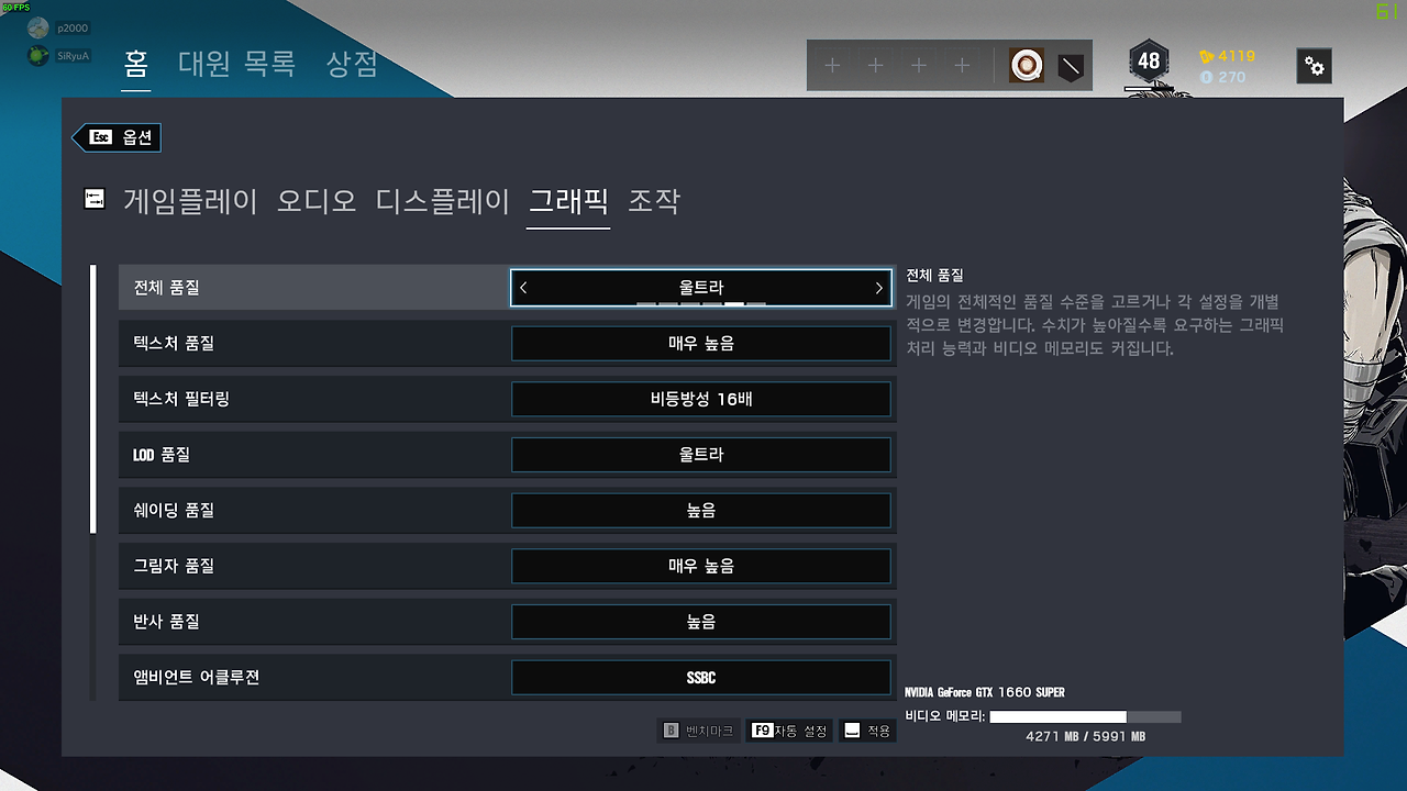 - 레인보우식스 시즈 울트라 옵션 FPS 출력