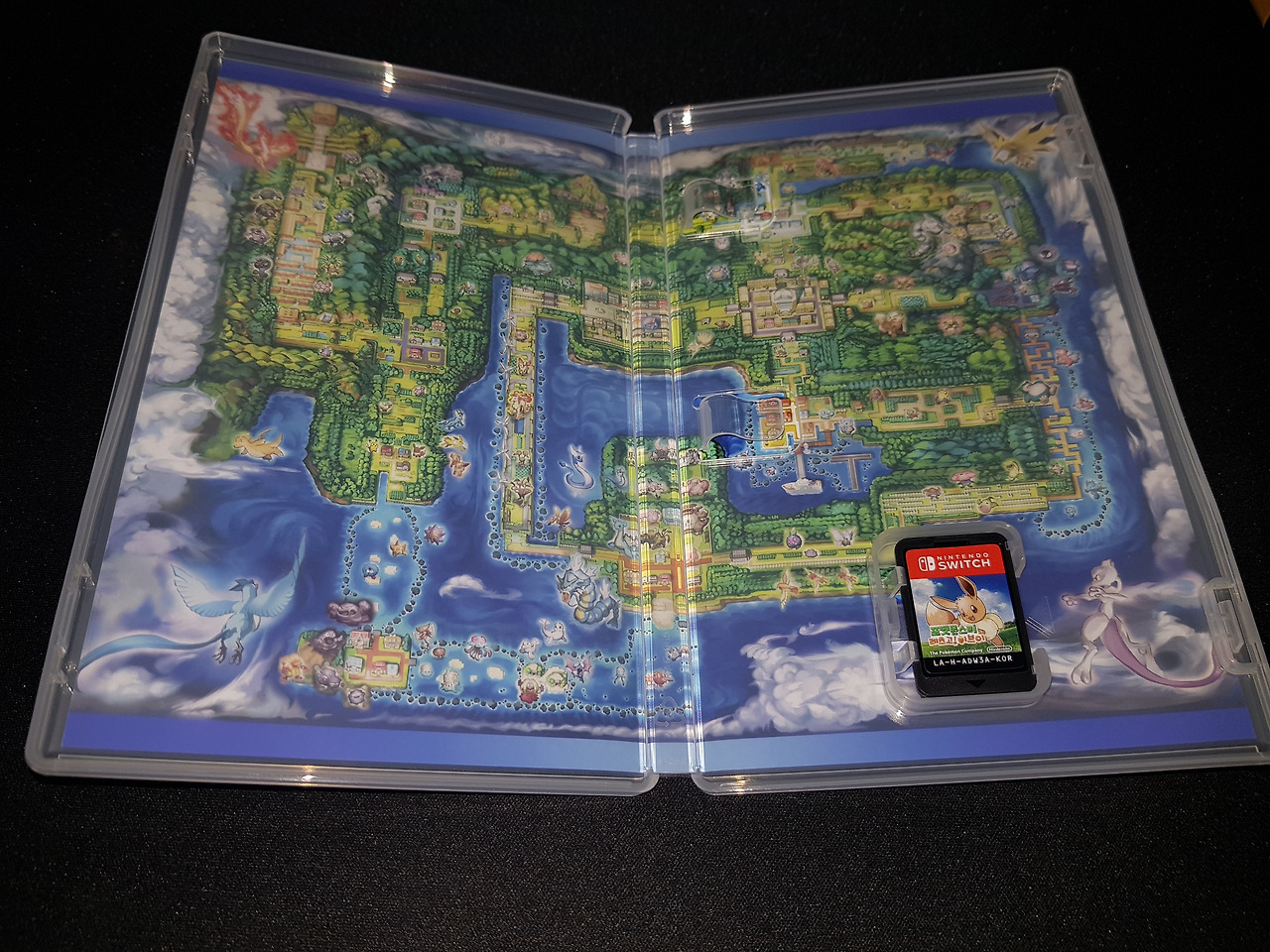 마지막으로 에디션 제품이니 당연히 이상한 맛이 나는 카트리지가 들어가 있는 게임 패키지가 같이 동봉되어있습니다. 열어보니 무대가 되는 관동지방 전체 모습과 함께 포켓몬들이 서식하는 지역에 맞추어서 그려져 있는데 상당히 오랜만에 보는 캐릭터들이 많아서 어릴 적 열심히 포켓몬 스티커 모을 때의 추억이 돋아납니다.