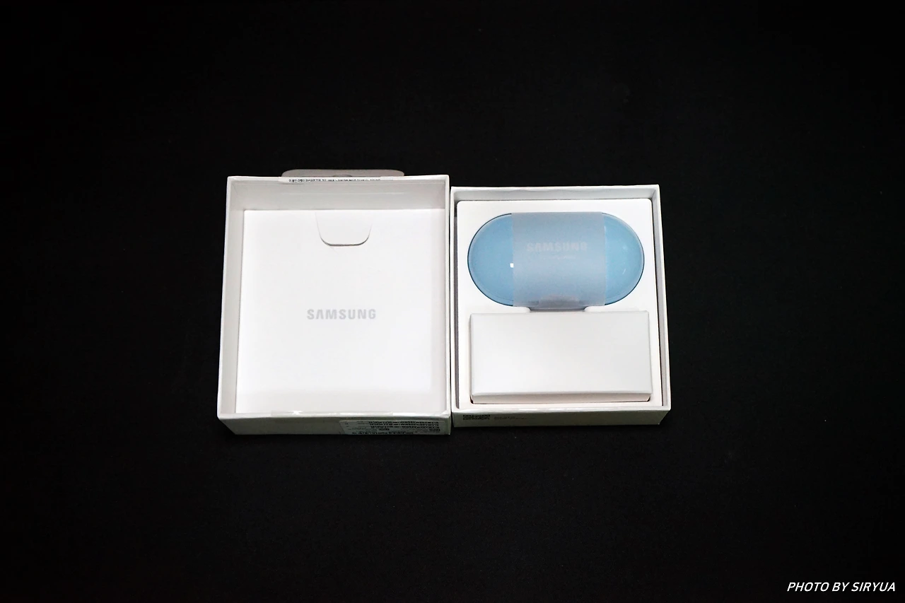 그리고 박스를 열어보면 갤럭시 버즈 플러스 본체와 구성품을 담아놓은 박스가 담겨있습니다. 아 참, 상단 커버 쪽에는 간단 사용 설명서가 담겨있는 박스가 있고요.