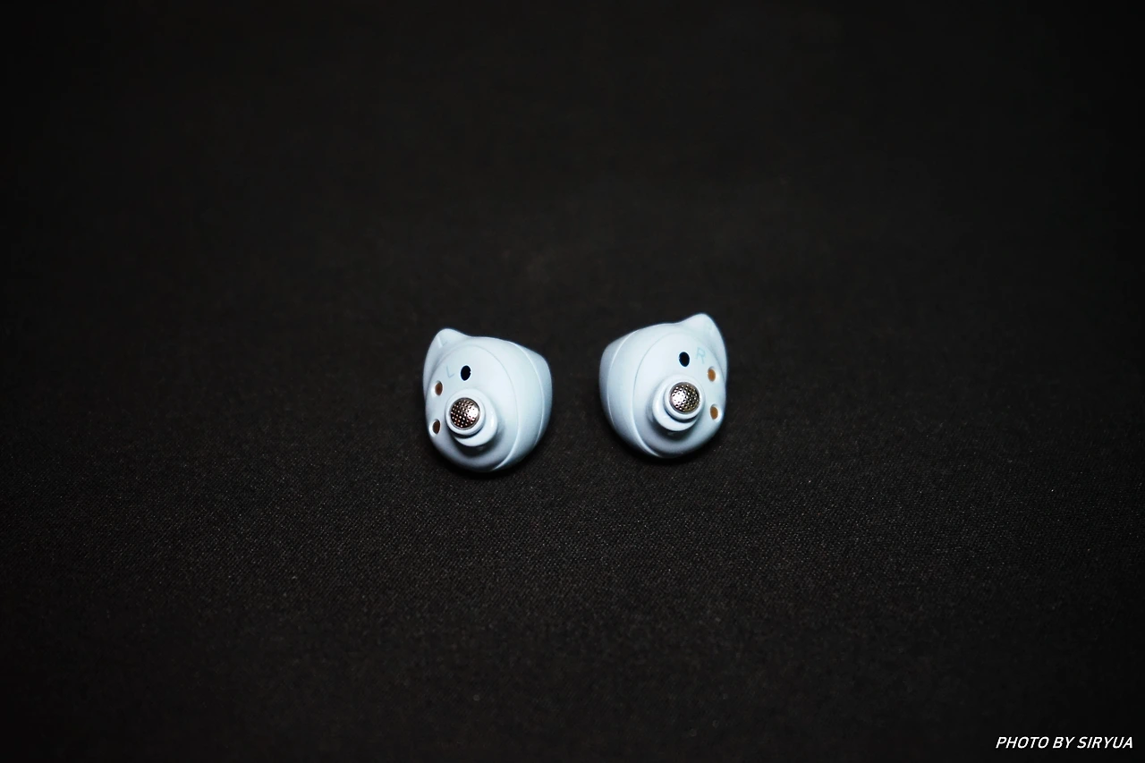 기존 갤럭시 버즈와 비교해보면 정말 한 치의 오차도 없이 동일한 형태를 가지고 있는데.. 자세히 살펴보게 되면 기술상 가장 큰 차이점을 가지고 있습니다. 바로 상단부에 외부 마이크가 하나 더 추가되었습니다. 마이크가 하나 더 추가됨에 따라서 통화 품질을 비롯하여 외부 소리 듣기 모드의 성능이 향상되었습니다. 이와 관련해서는 후술하도록 하지요.