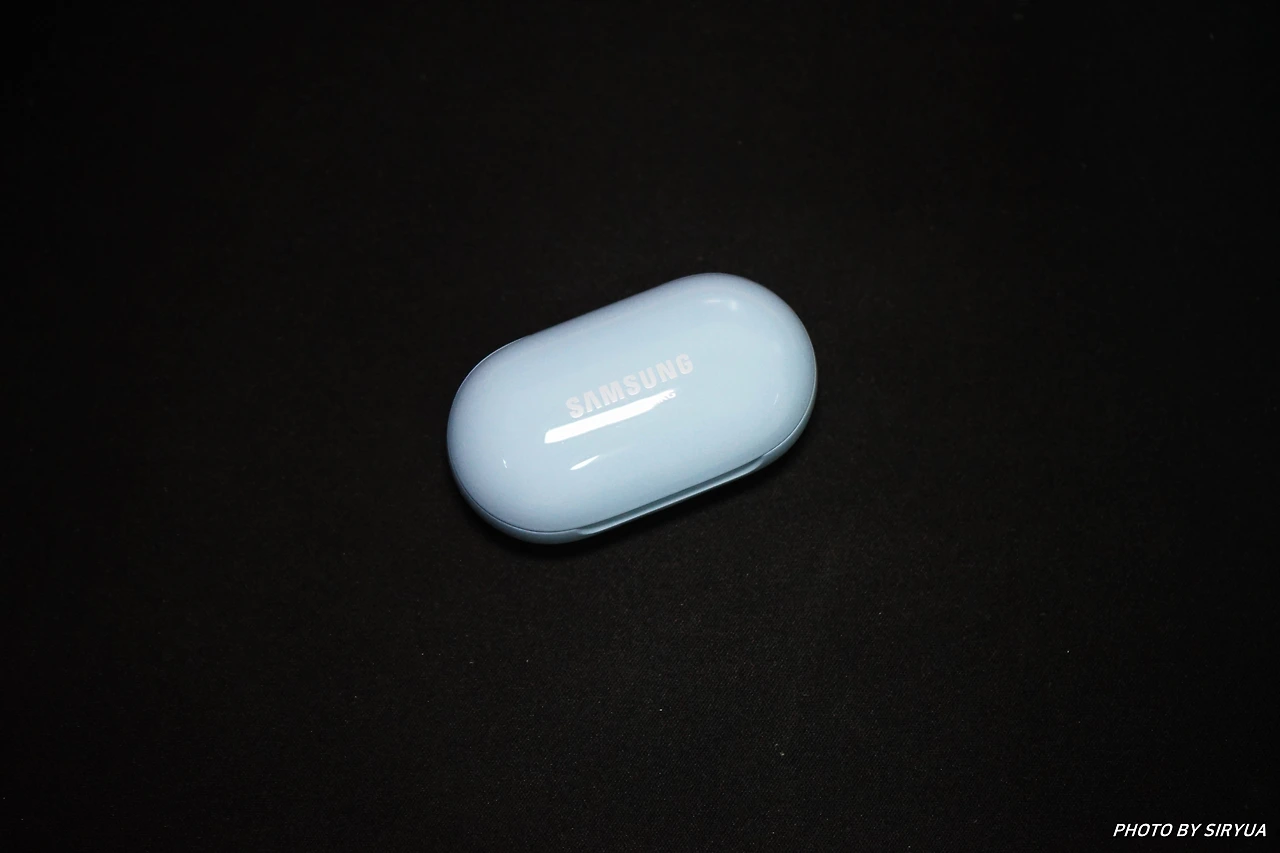 갤럭시 버즈 플러스의 케이스는 타원형으로 동글동글하면서 작은 크기를 가지고 있던 갤럭시 버즈 케이스와 비교해서 유광 처리가 되어있다는 점을 제외하고는 크게 달라진 점이 없습니다.
