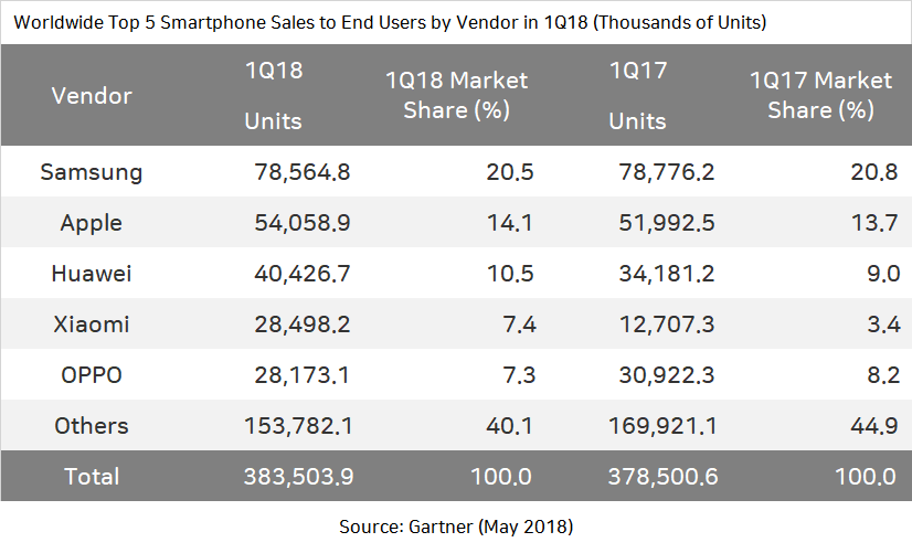 아직 2018년이 끝나지 않았기 때문에 연단위 자료가 없어 가트너에서 나온 1분기 · 2분기 · 3분기 자료들을 가지고 대략적으로 대조해보았습니다. 정확한 대조를 하기 위해서는 4분기 자료와 연단위 자료를 함께 보면서 하는 것이 정확하기 때문에 향후 추가적으로 자료가 나오고 나면 다시 한번 해보도록 하겠습니다.