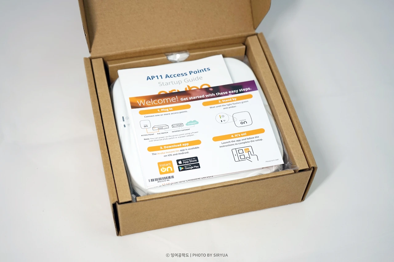 엔터프라이즈 용 제품들의 박스 패키지가 가지고 있는 공통적인 특징이라고 하면 바로 무지 박스를 사용한다는 점입니다. 재활용, 원가절감 등 다양한 이유에 의해서 많은 제조사들이 무지 박스를 사용해서 제품 포장을 많이 하고 있는데, 아루바 인스턴트 온 역시 엔터프라이즈 제품 아니랄까 봐 무지 박스에 제품명과 제품의 종류가 흰색으로 프린트되어 있습니다.