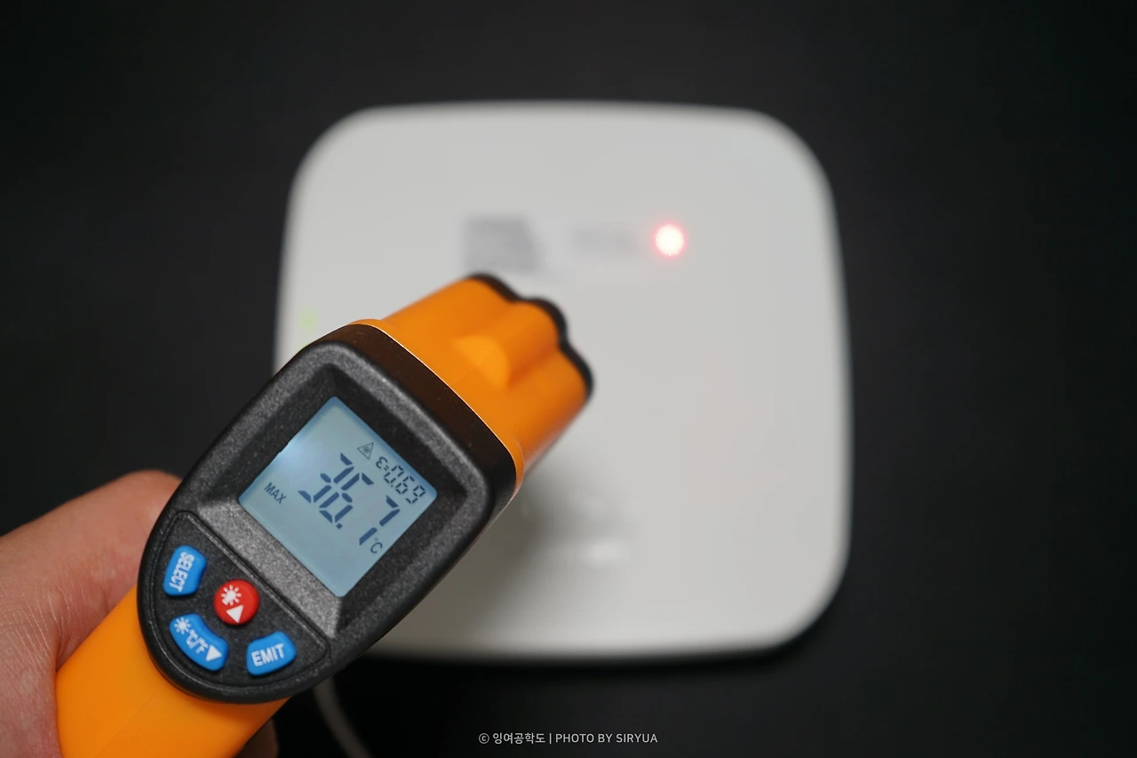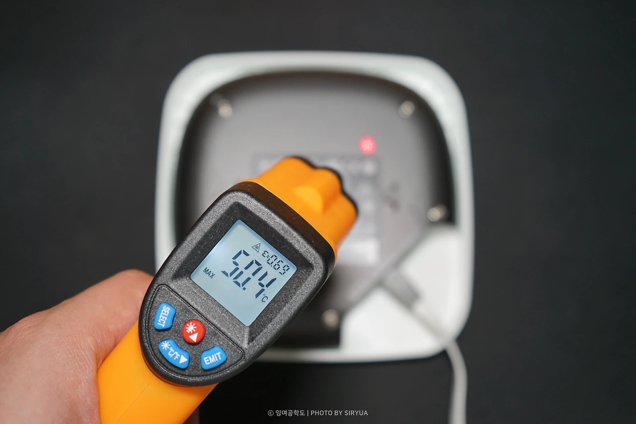 내구성을 높이기 위해서 금속 재질을 사용한 것은 좋은데, 이런 부분에 있어서는 조금 아쉽게 다가오네요. 그래도 금속 재질임에도 불구하고 그렇게까지 높은 온도로 올라간 것이 아니기 때문에, 설치하실 때 공기 순환이 잘 이루어지는 곳이나 어느 정도 발열 대응을 고려해두신다면 큰 온도 상승 없이 일정하게 안정적인 온도로 동작할 것으로 판단됩니다.