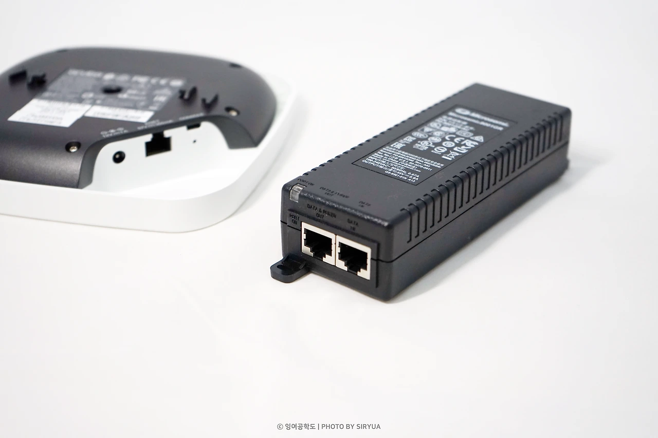 아루바 인스턴트 온 같은 경우 기가 비트 통신을 지원하고 있기 때문에 팬텀 파워 기술이 사용되고 있는 802.3af 규격의 PoE를 사용하고 있습니다. 고로, 802.3af 규격의 PoE 인젝터를 사용한다면 랜선 하나로 전원 공급 및 데이터 통신을 할 수 있습니다.