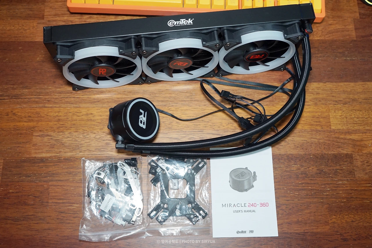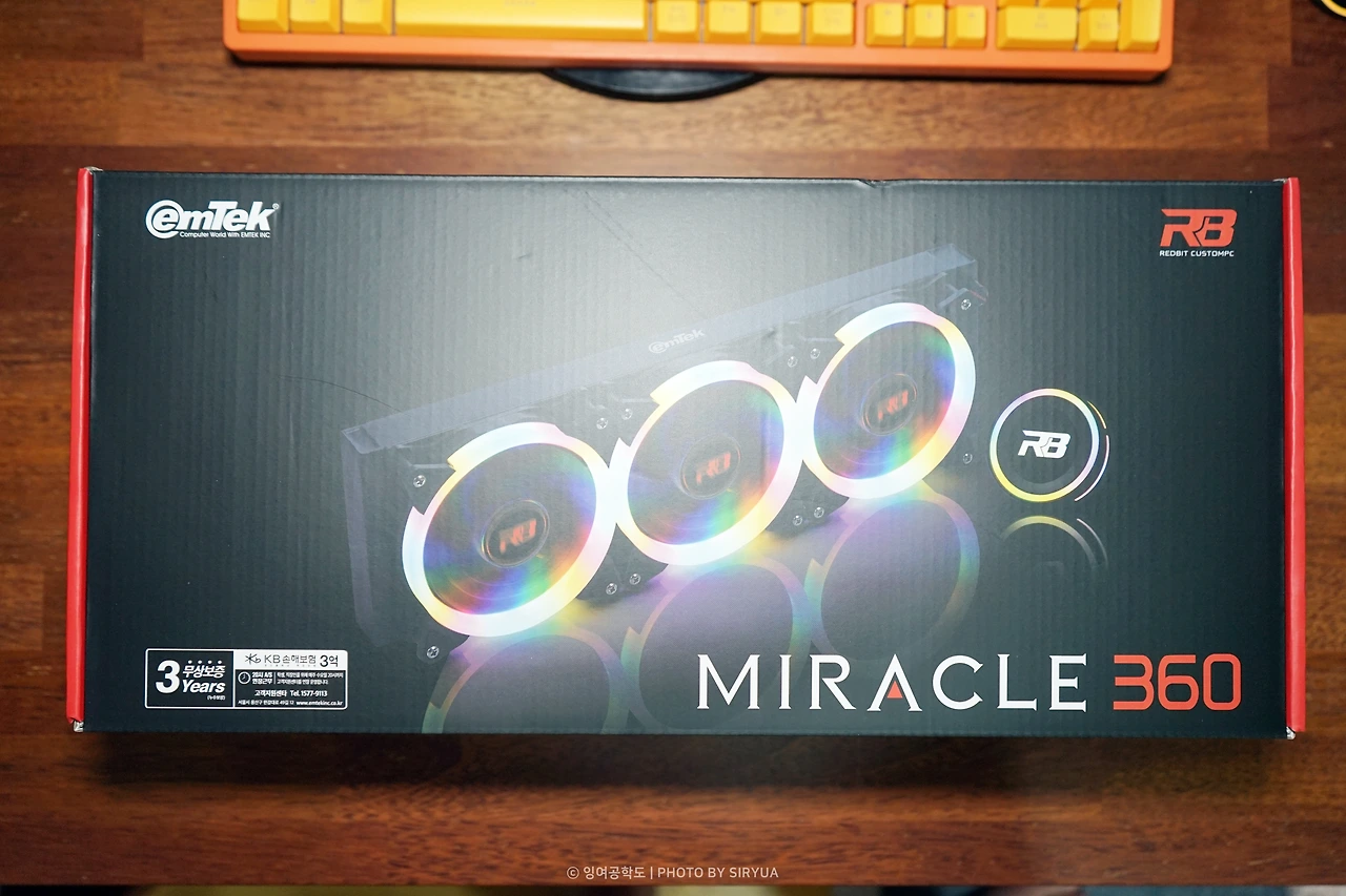 그래서, 이번에 가성비가 나름 괜찮아 보이는 이엠텍(EmTek) REDBIT MIRACLE 360 3열 수냉 쿨러를 구매해서 교체를 진행했습니다.