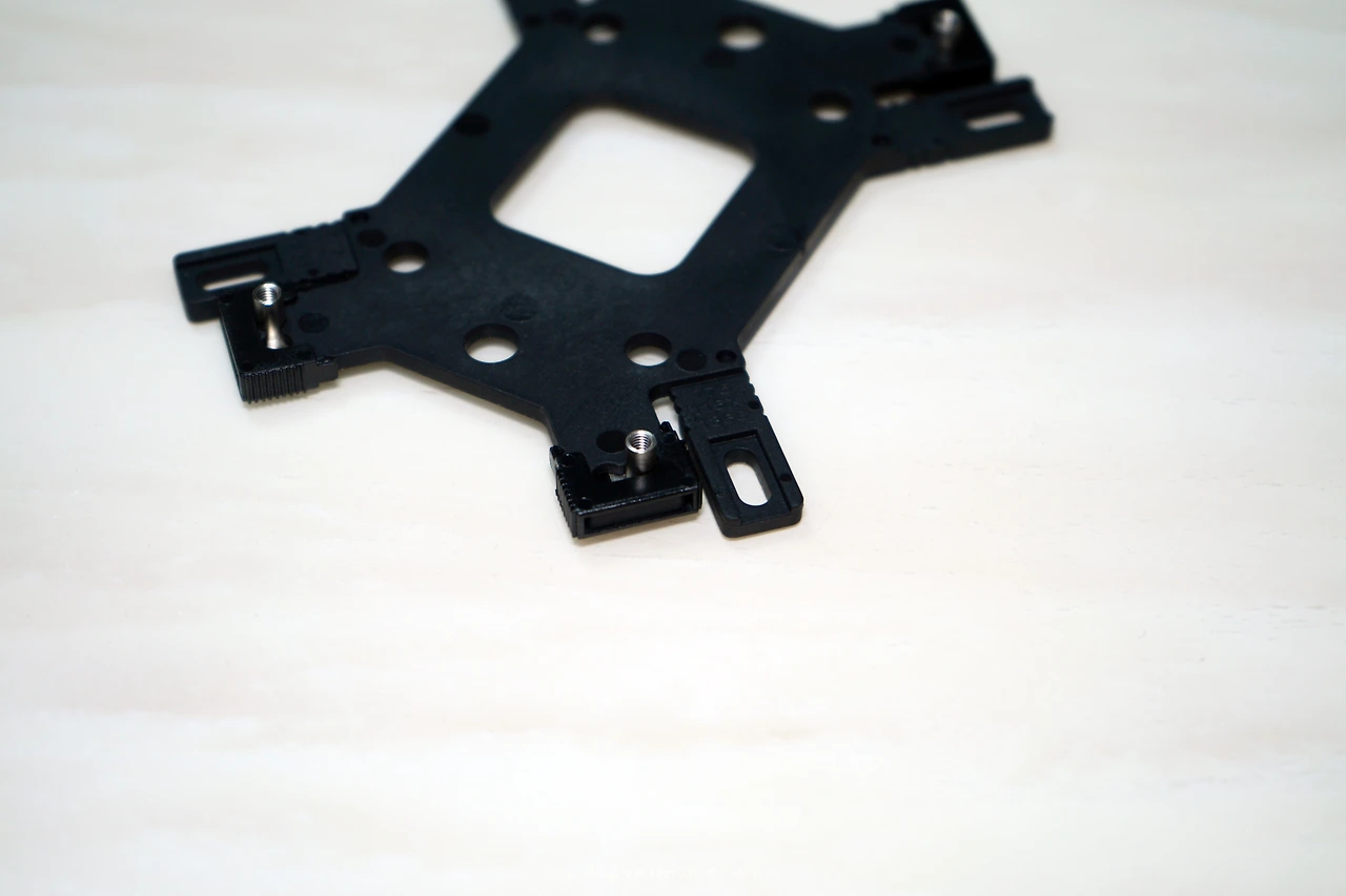 워터 블록의 위치를 잡고 고정하는 백 플레이트는 각각의 소켓에 맞추어서 너트를 끼워 넣어 조립할 수 있도록 되어있습니다. 이번에 설치를 진행할 PC는 라이젠 5 3600으로 AM4 소켓에 맞추어서 너트를 끼워 넣고 고정 클립을 결합시켰습니다.
