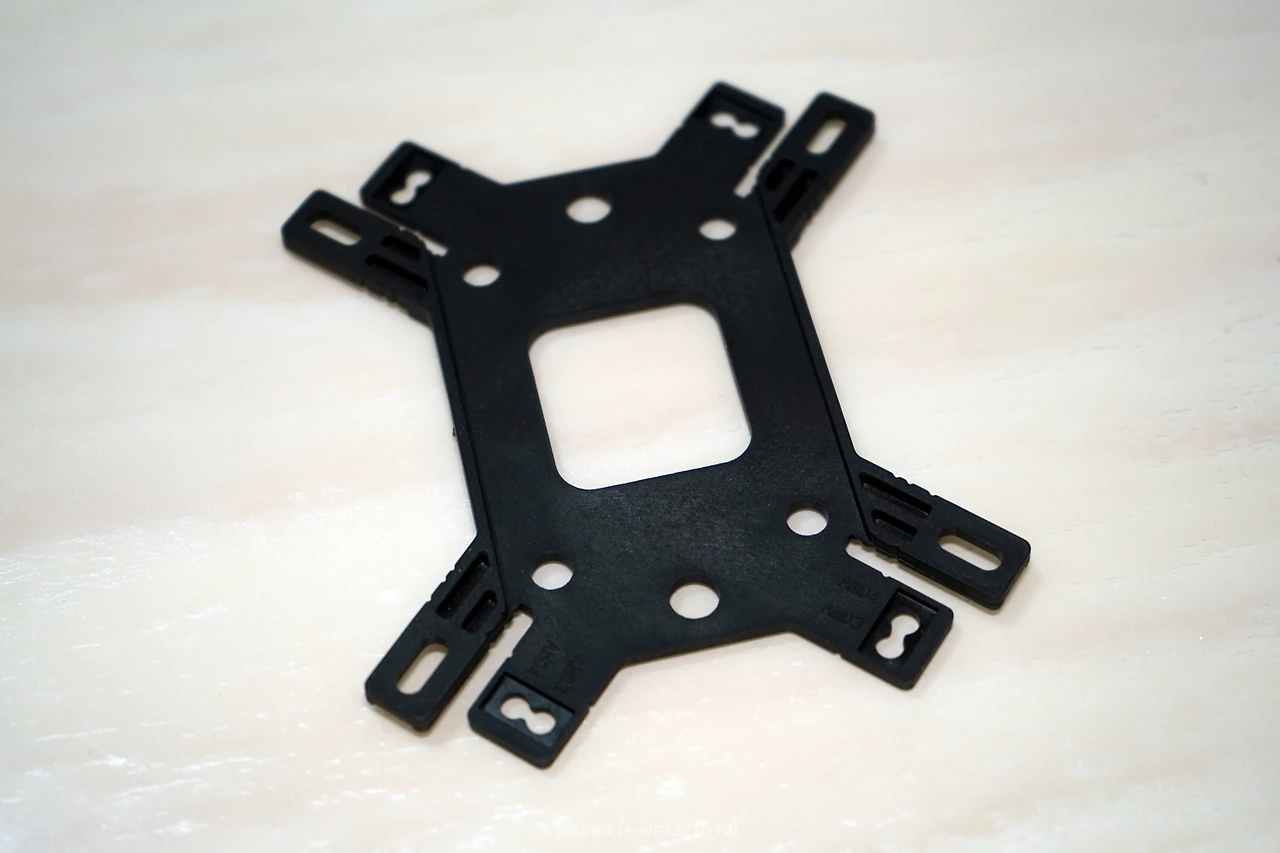 CPU의 열을 전달받고, 냉각하는 백 플레이트는 열전도율이 높은 구리로 되어있으며, 배송 간 스크래치가 발생되는 경우를 방지하기 위해 보호 필름이 붙어있습니다. 설치를 진행할 때는 꼭! 원활한 쿨링을 위해서 보호 필름을 제거해야됩니다.