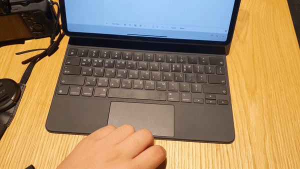 애플 같은 경우 제스처가 상당히 잘 되어있다 보니까 트랙패드의 크기가 크면 클수록 유리한 점이 많은데.. 매직 키보드의 트랙패드는 크기가 작다 보니 아쉽습니다. 하지만, 작은 고추가 맵다고.. 이 작은 트랙패드에서 지원해 주고 있는 제스처는 두 손 터치를 통한 화면 이동, 세 손 터치를 이용한 앱 간 이동까지 '그래! 이게 애플이지!'라는 생각이 들 정도로 막강합니다.