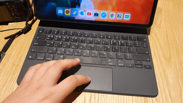 iPad OS 13.4부터는 아이패드 환경에 최적화된 마우스 기능이 추가되었습니다. 블루투스 또는 USB 어댑터를 통해서 마우스 또는 매직 트랙패드를 연결할 경우, 아이패드에 특화된 포인터가 나오며 아이패드를 굳이 터치하지 않더라도 제어할 수 있습니다. 그리고 매직 키보드에서는 이를 바탕으로 키보드와 함께 트랙패드를 같이 제공해 주고 있습니다.