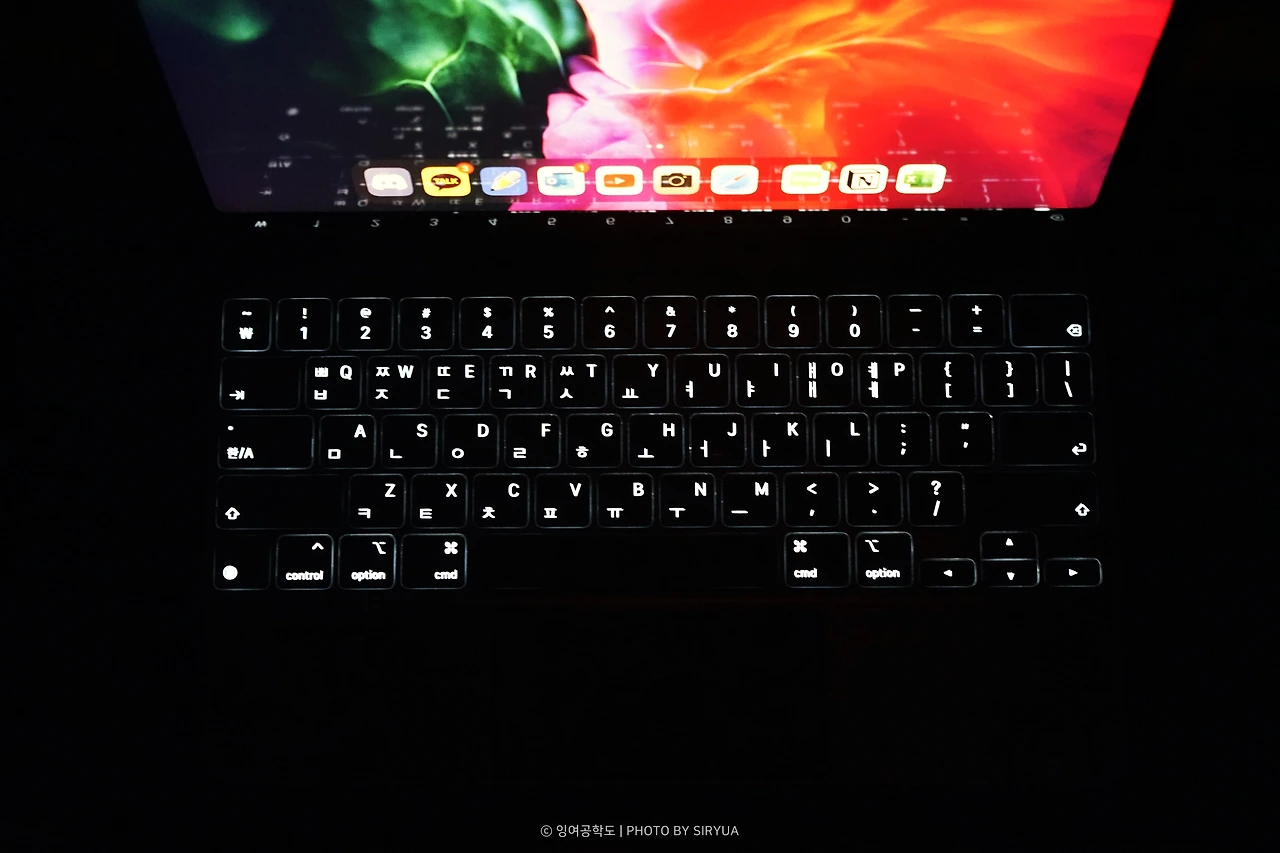 자판 배치에 있어서는 맥북과 동일하여 괜찮다고 생각하나, ESC / F 키(F1~12) 또는 터치 바 / Fn 키가 없어서 아쉽게 다가옵니다. 단순 문서작업만 하더라도 F 키로 할 수 있었던 간단한 작업들이 전부 커맨드 입력을 통해서 해야 되며, 보조키 설정을 바꾸지 않는 한 ESC 키가 없기 때문에 오동작 입력 취소가 어렵습니다. 거기에 Fn 키 관련해서는 앞서 이야기한 백라이트만 봐도 알겠지요? 굳이 더 이야기하지 않겠습니다.