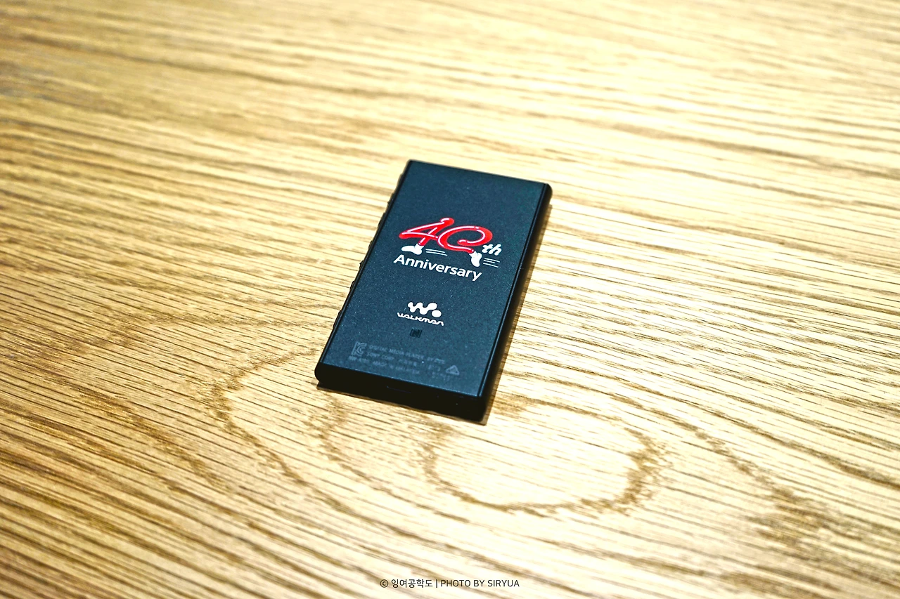 마지막으로 뒷면에는 40주년 기념 제품답게 '40th Anniversary'가 큼지막하게 있습니다. 여러모로 기념 제품 답게 차별점을 보여주고 있는 듯한 느낌을 주어서 괜찮다고 생각됩니다. 다만, 한 편으로는 저 부분을 제외하고는 NW-A100 블랙 모델과 '과연 무슨 차이점이 있는 것인가?' 의문을 남기고 있어 여러모로 아쉽게 생각됩니다.