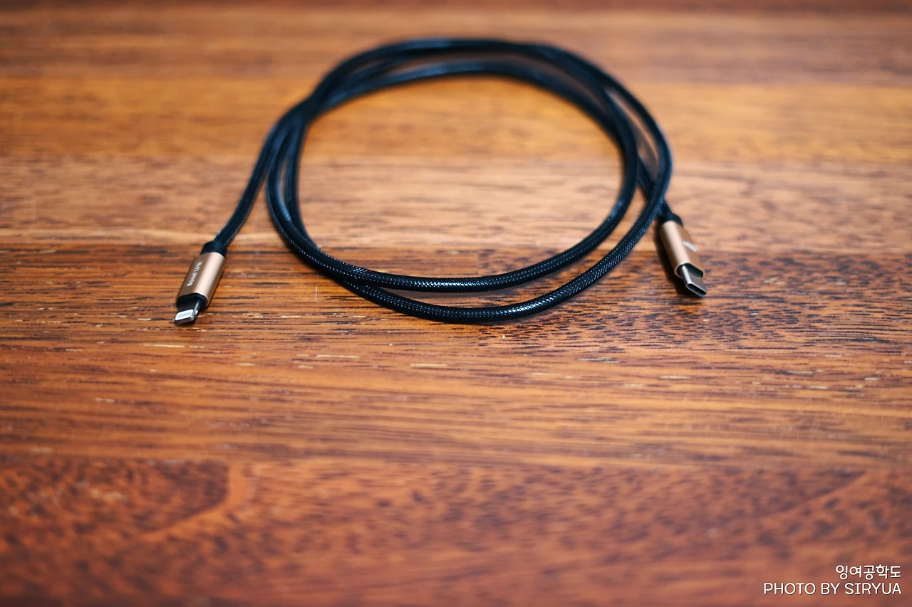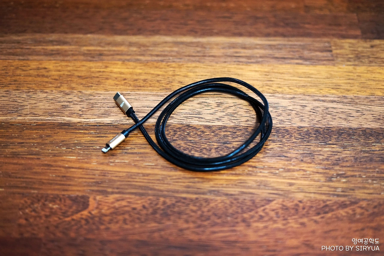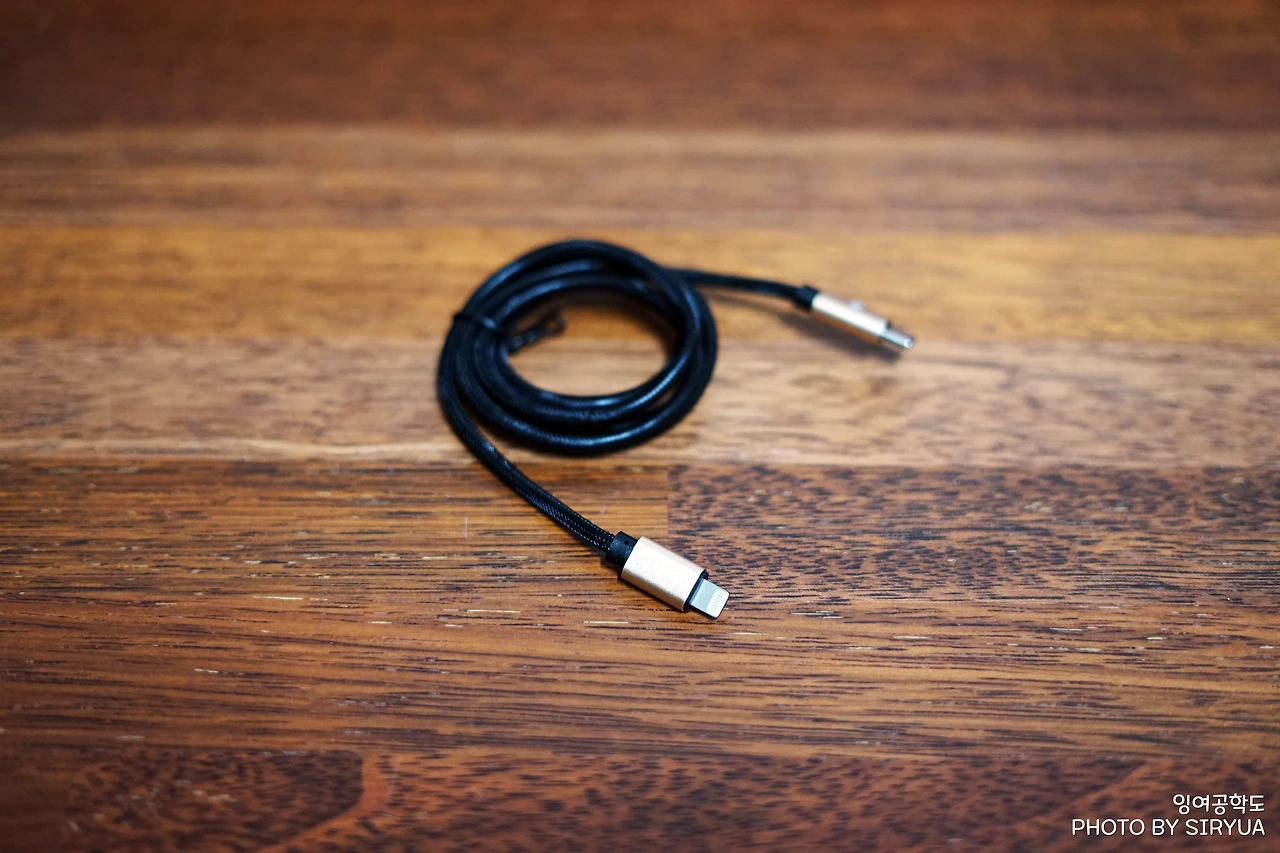 엉킴이 발생하지 않는 나일론 재질을 통해서 슬리브 처리하고, 깔끔하고 세련된 황동색 금속 하우징과 두터운 결합 부분 고무 마감을 통해서 매우 견고한 내구성을 가지고 있는 케이블이었습니다. 또한, MFi 인증을 받은 제품이다 보니 배터리 충전부터 시작해서 데이터 이동까지 문제없이 잘 되기도 했고요.