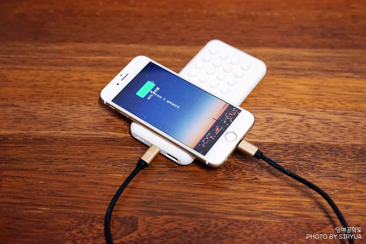 케이블에 대해서 전반적으로 살펴봤으니.. 이제 사용 테스트를 진행해야겠지요? 첫 번째는 고속 충전을 지원하는 보조 배터리에 연결하여 아이폰을 충전시켜보았습니다. MFi 인증이 되어있다 보니 별도의 잠금해제를 진행하지 않아도 충전이 바로 이루어졌으며, 충전을 진행하는 과정에서 장애가 발생하는 일은 없었습니다.