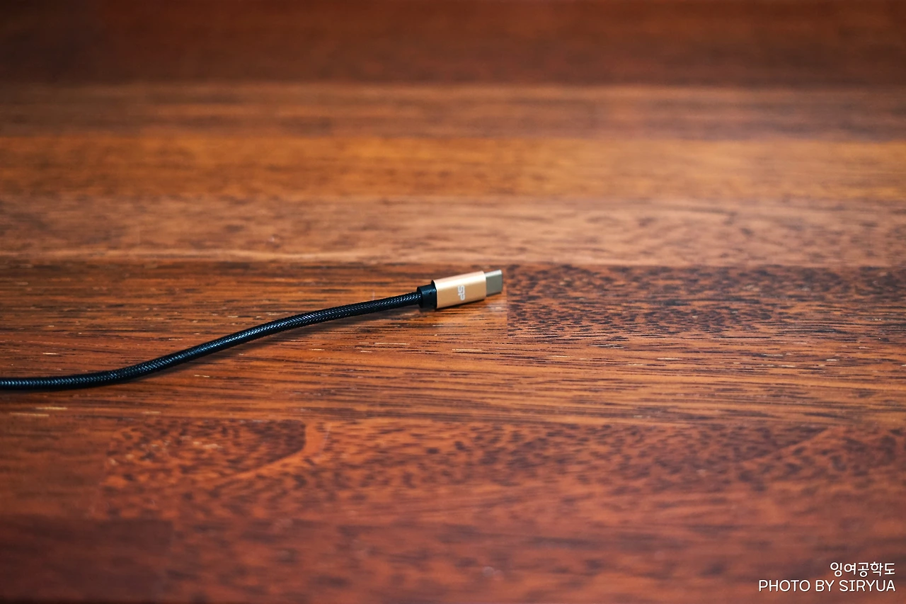 라이트닝과 USB Type C 단자 부분은 깔끔한 황동색 금속 하우징으로 마감처리되어있으며, 하우징 결합 부분에서 쉽게 꺾어지지 않도록 고무 재질로 두텁게 마무리 처리가 잘 되어있습니다. 고로, 지금까지 살펴본 내용을 정리해보았을 때, 내구성에 있어서 여러모로 잘 마감처리되어있어서 오랜 기간 동안 튼튼하게 사용할 수 있을 것 같습니다.