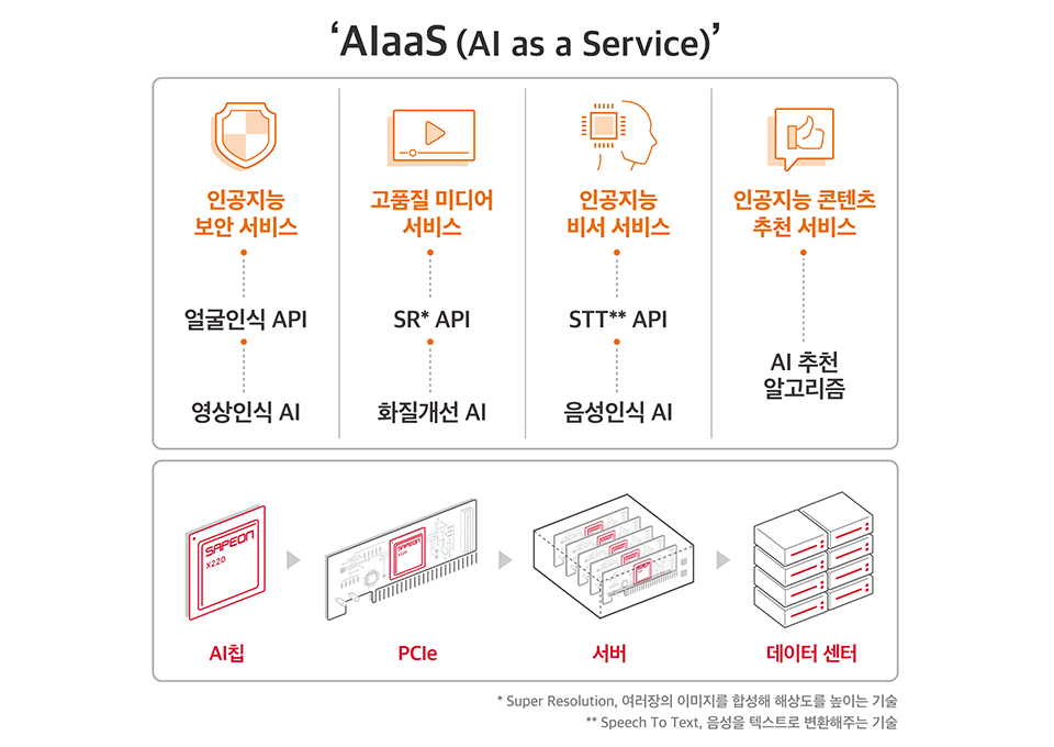 SKT는 이러한 시장 현황에 맞추어서 AI 반도체 칩 하드웨어부터 AI 알고리즘과 API 등의 소프트웨어까지 AI 서비스에 필요로 한 통합 설루션을 제공하는 AIaaS(AI as a Service) 전략을 통해 글로벌 시장을 공략할 것이라고 합니다.