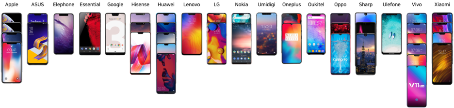 안드로이드 창시자 중 한 분인 앤디 루빈이 구글 퇴사 후 설립한 에센셜(Essential)에서 2017년 5월 첫 출시한 스마트폰 PH-1 에 처음 적용되었으며, 많은 사람의 호불호가 극명하게 나뉘고 있는 디자인 중 하나인 노치 디자인이 대중적으로 많이 알려지게 된 계기가 되었던 아이폰 X 공개일(17.9.12)이 어느덧 벌써 1년하고도 더 많은 시간이 지났습니다. 노치가 적용된 아이폰 X 가 공개되고 이를 뒤따르듯이 여러 제조사에서 노치 디자인이 적용된 풀 스크린을 목표로 하는 스마트폰들이 출시되었고, 지금까지 이어지고 있습니다. 그동안 얼마나 많은 제조사에서 노치 디자인이 채택되어 사용되었을까요?