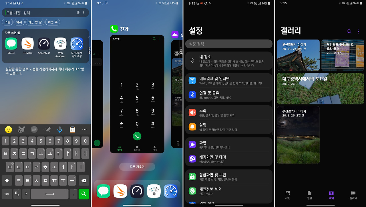 사용자의 필요성 및 하드웨어 설계에 따른 사용자 경험에 따라 여러 가지 홈을 제공해주고 있다는 점에 있어서는 매우 괜찮게 다가오나, 문제는 홈 화면 간의 전환 속도입니다. 지금은 몇 번의 업데이트 이후 많이 나아졌지만, 확실히 각기 다른 홈으로 전환하는 과정에서 발생되는 애니메이션 지연(delay)은 아쉬운 수준입니다.