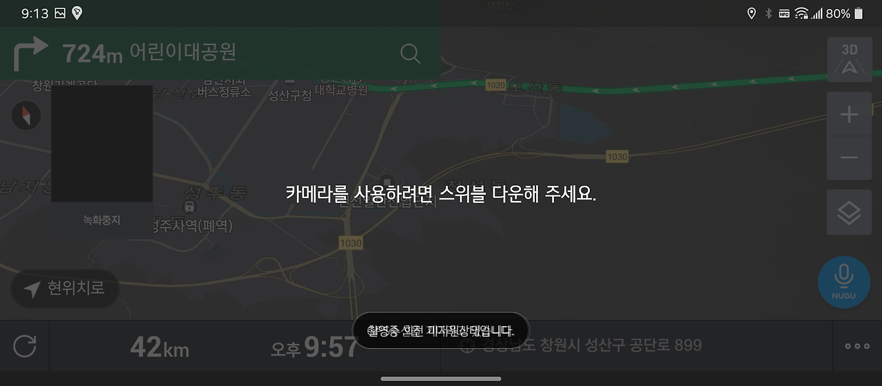 당장 많은 분들이 사용하고 있는 내비게이션 앱인 T맵 같은 경우 스위블 모드에서 블랙박스 기능이 동작하지 않습니다. 오로지 스위블 하지 않은 상태에서만 블랙박스 기능을 사용할 수 있다는 것이지요. 충분히 양사 간의 협력을 통해서 단기간에 해결이 가능한 문제로 보이는데 출시한 지 몇 달이 지났음에도 불구하고 아직까지 지원되지 않고 있습니다.