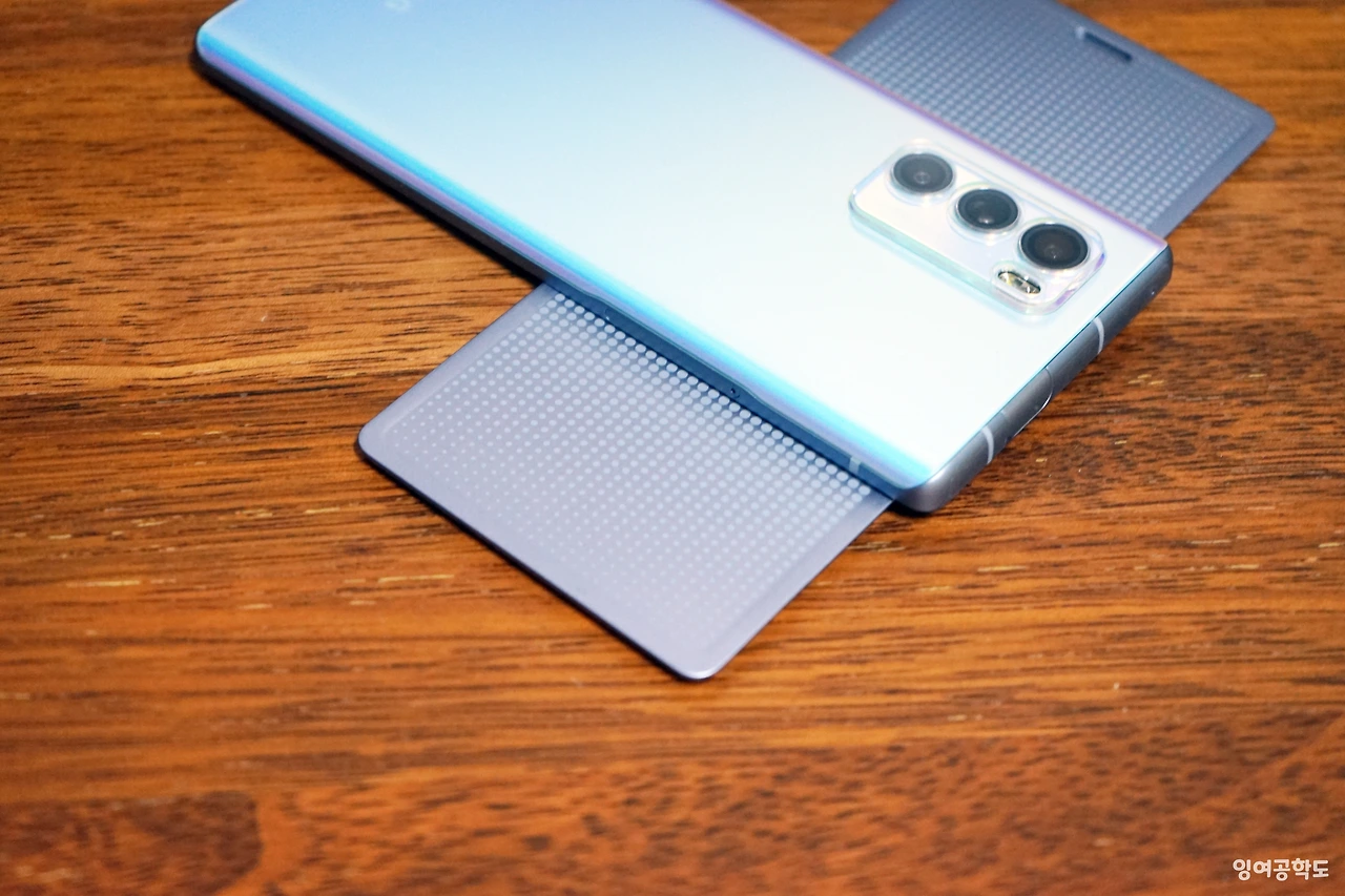 그리고 이러한 디자인은 후면 디자인에서도 이어지고 있습니다. 비록 물방울 카메라로 미려한 디자인을 가지고 있던 벨벳만큼은 아니지만 카메라 섬이 렌즈 크기 순서대로 정리되어 꽤나 깔끔하게 잘 되어있으며, 너무 화려하지도 않으면서 그렇다고 너무 심심하지도 않은 적절한 색상을 통해서 매우 깔끔한 뒷면을 가지고 있습니다.