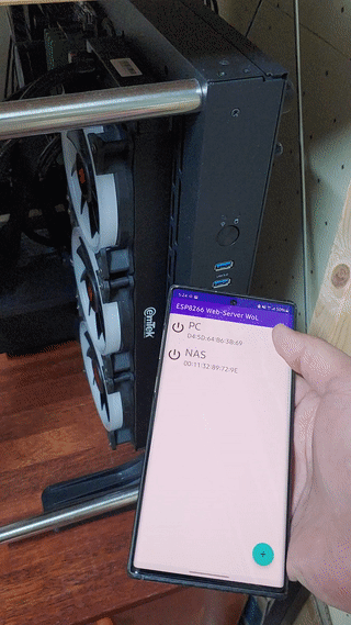 웹서버에 접속하며 들어온 파라미터를 바탕으로 NodeMCU에서 NAS를 비롯한 지원 하드웨어로 WOL 매직 패킷 전송
