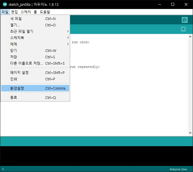 아두이노 IDE에 ESP8266 관련 정보 추가는 "파일 > 환경설정"에 들어가서 추가적인 보드 매니저 URLs에 ESP8266 관련 주소를 추가해줍니다.