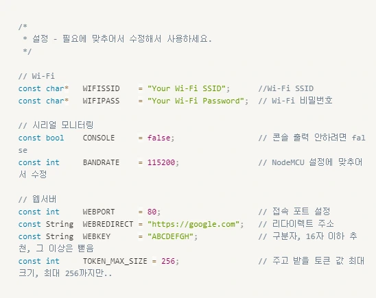 NodeMCU에서 설정으로 사용할 항목들입니다.